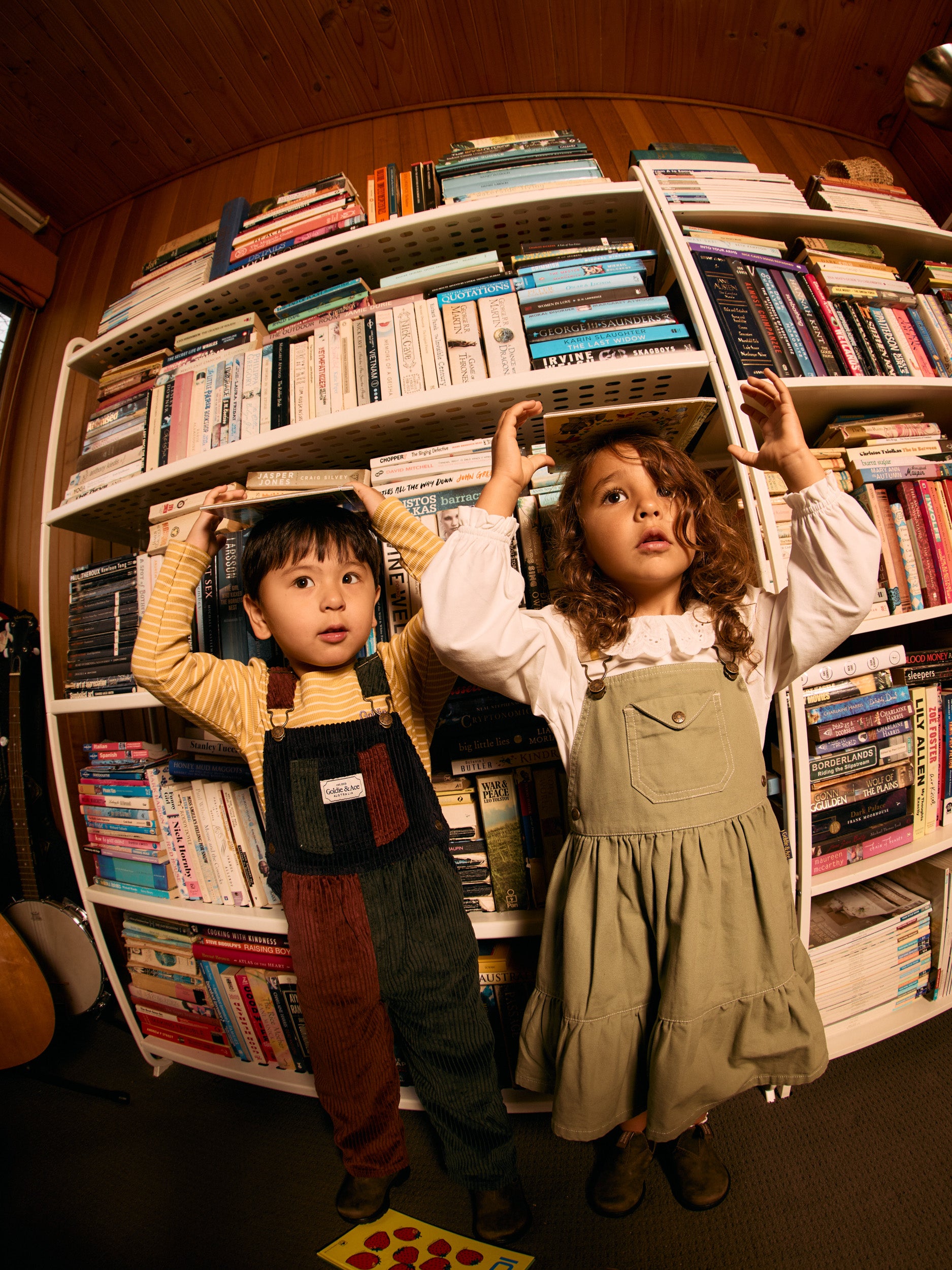 Our iconic Austin overalls get a wintry colour-block twist in brown, moss green, and navy – with straps that grow with them and pockets for whatever little treasures they can find.
