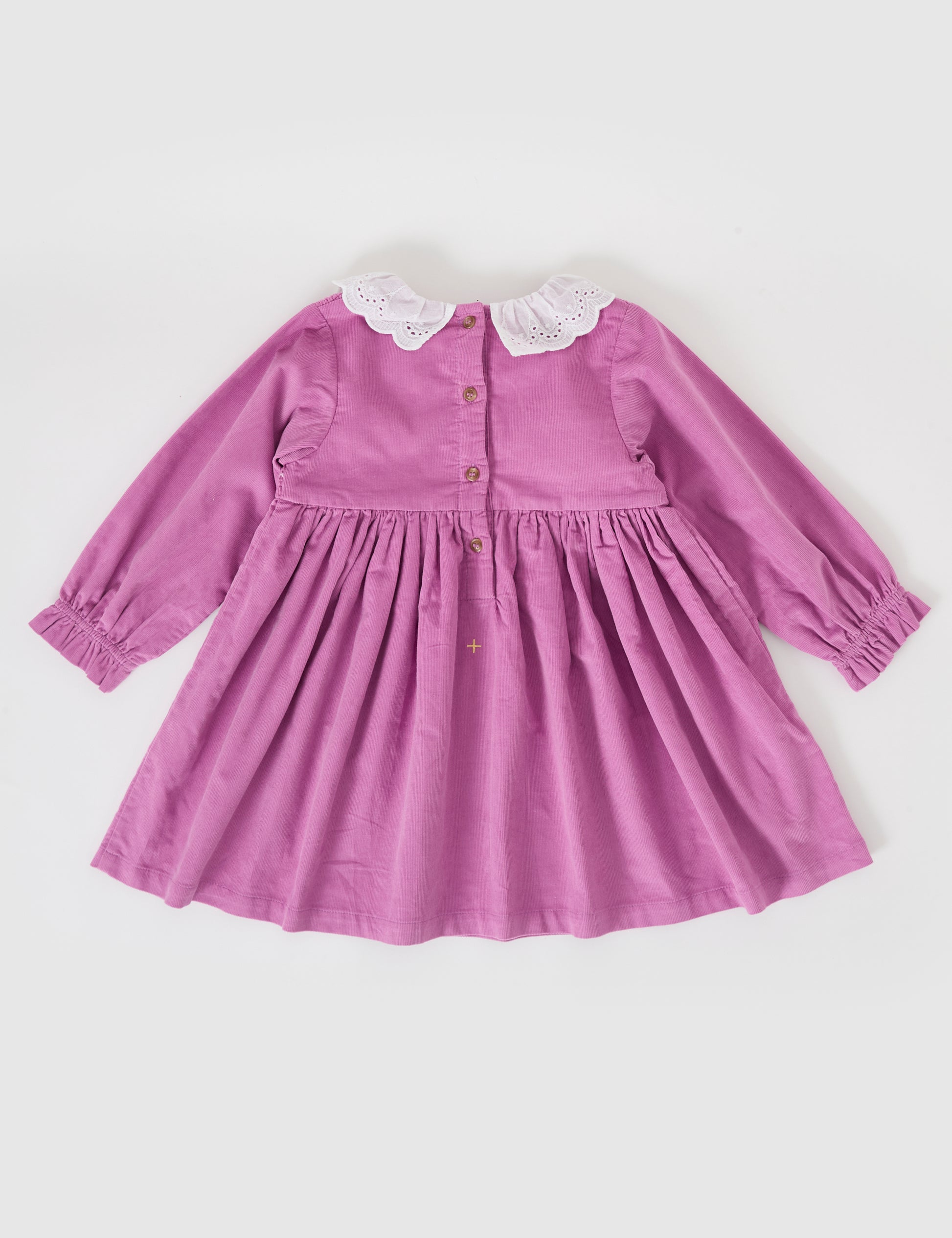 Made for twirls, tea parties, and tiny celebrations! The Daphne Corduroy Smocked Dress fits true to size with a comfy, relaxed shape for easy movement. Buttons at the back make dressing up as simple as can be. A dreamy broderie anglaise collar and delicate embroidered smocking add just the right touch of fancy. Soft cotton lining keeps it comfy all day. It’s the perfect pick for birthdays, holidays, or any day that needs a little extra sparkle!