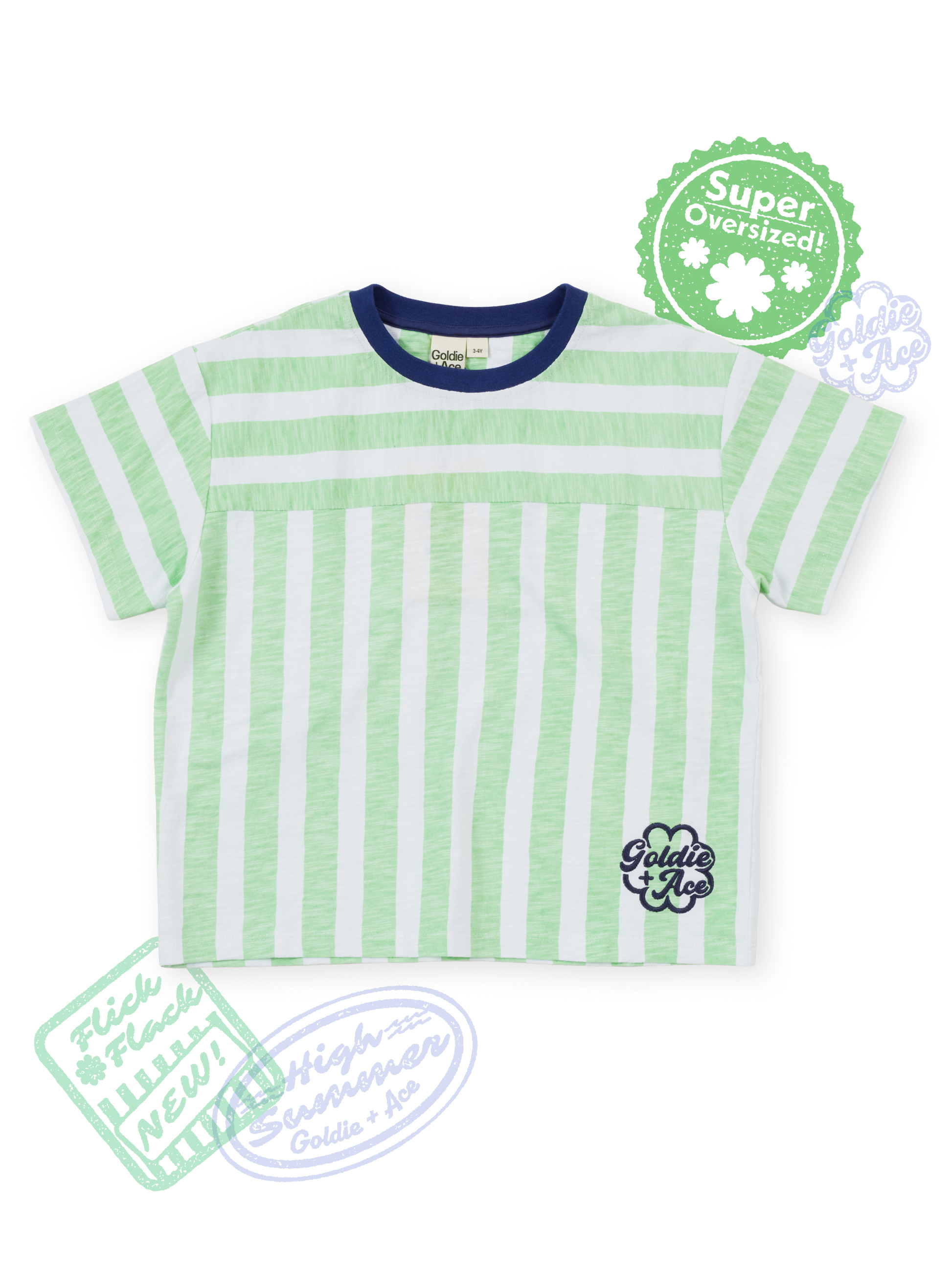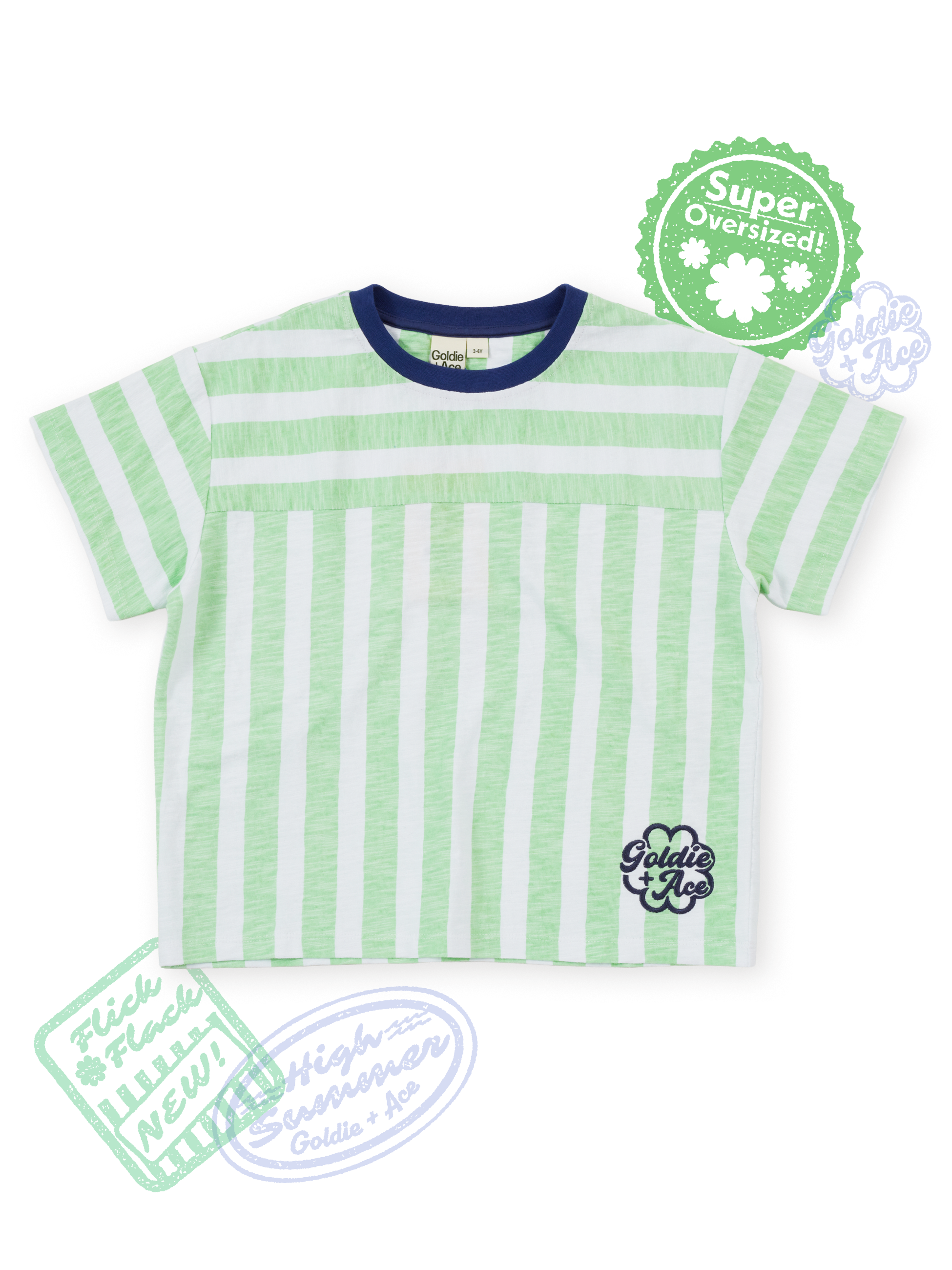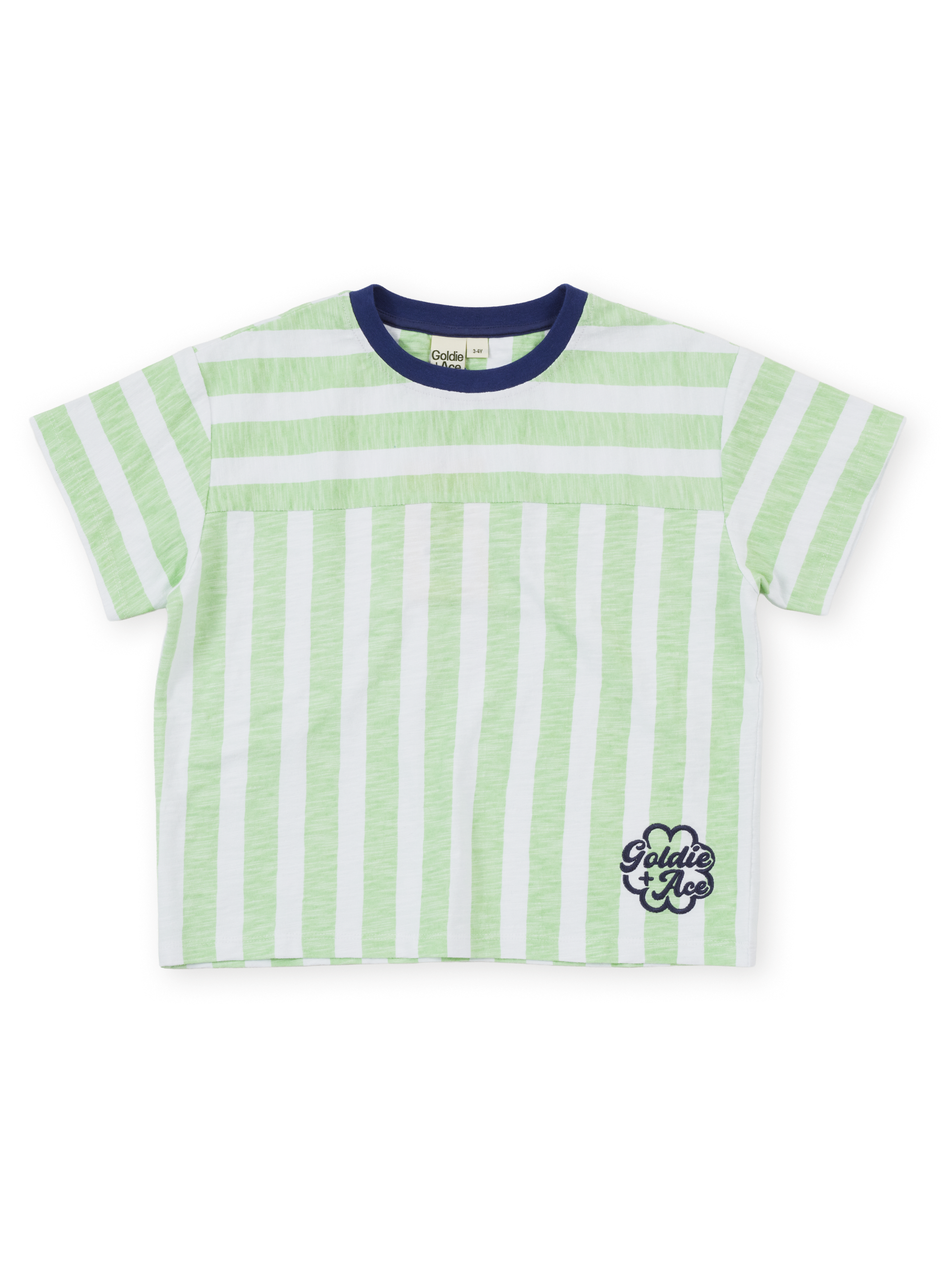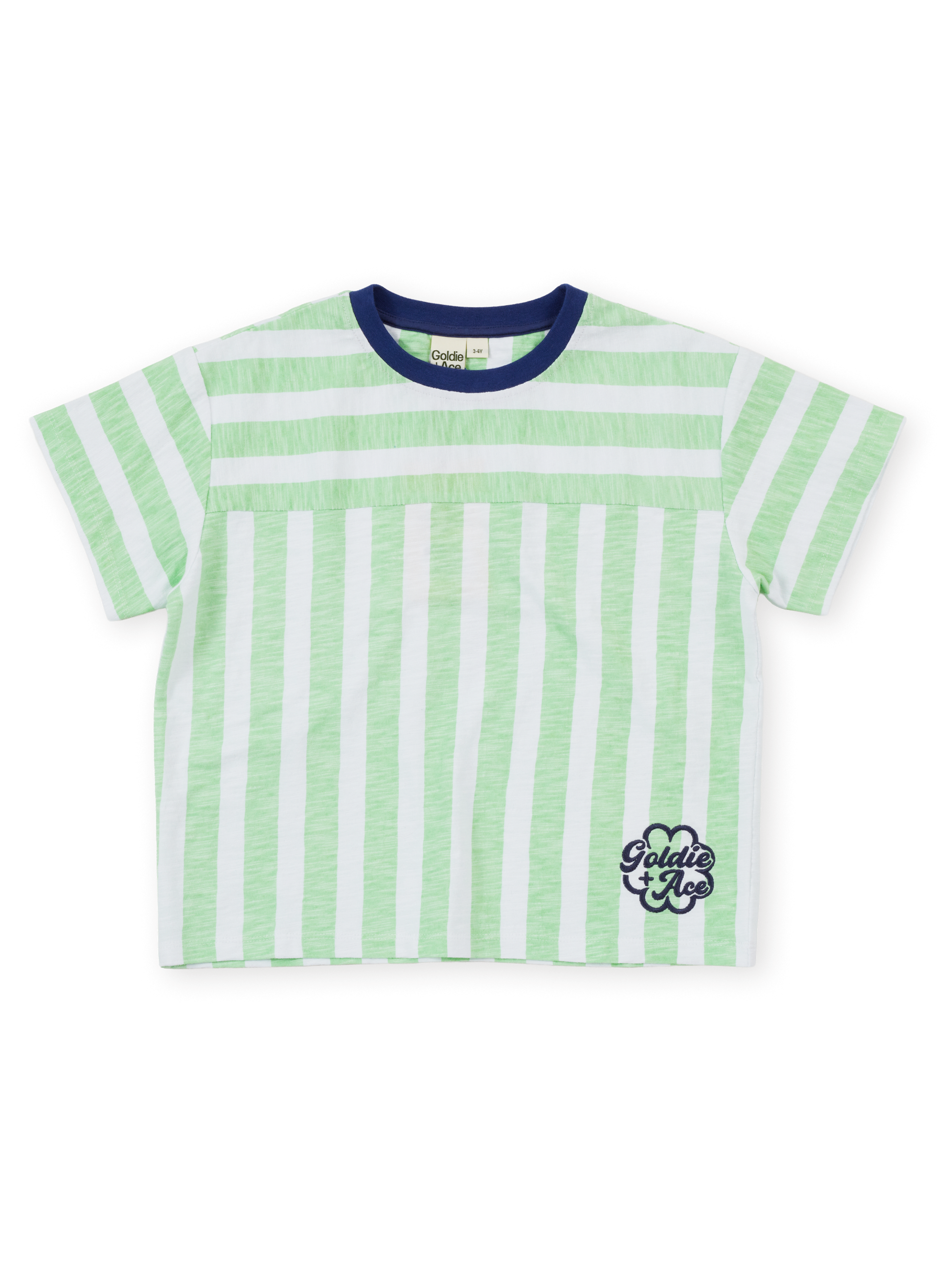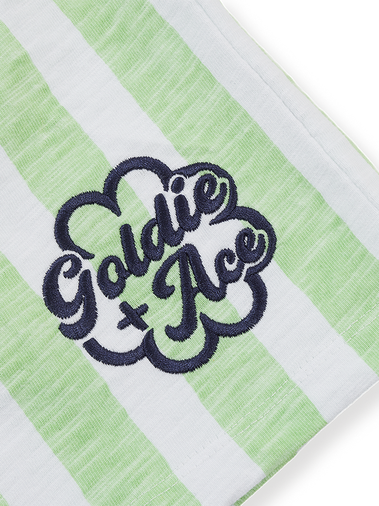 Minty fresh and made for maximum mischief. This striped tee is a summer staple, with a sweet little Goldie + Ace embroidered detail down the corner – like a secret wink only cool kids notice. Easy, breezy, and goes with just about everything in their wardrobe.