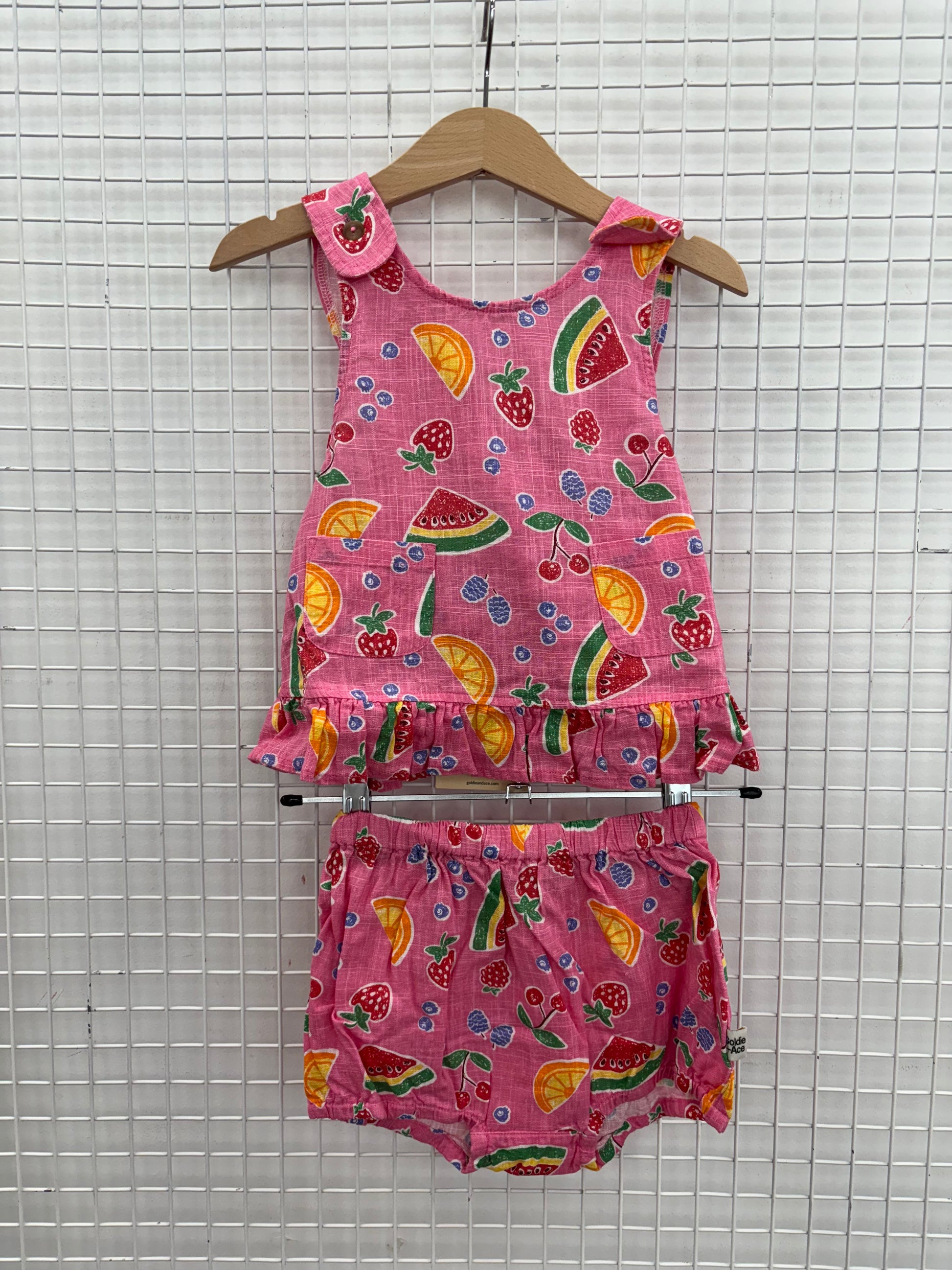 FRUIT SALAD CROSS BACK LINEN SET - PINK