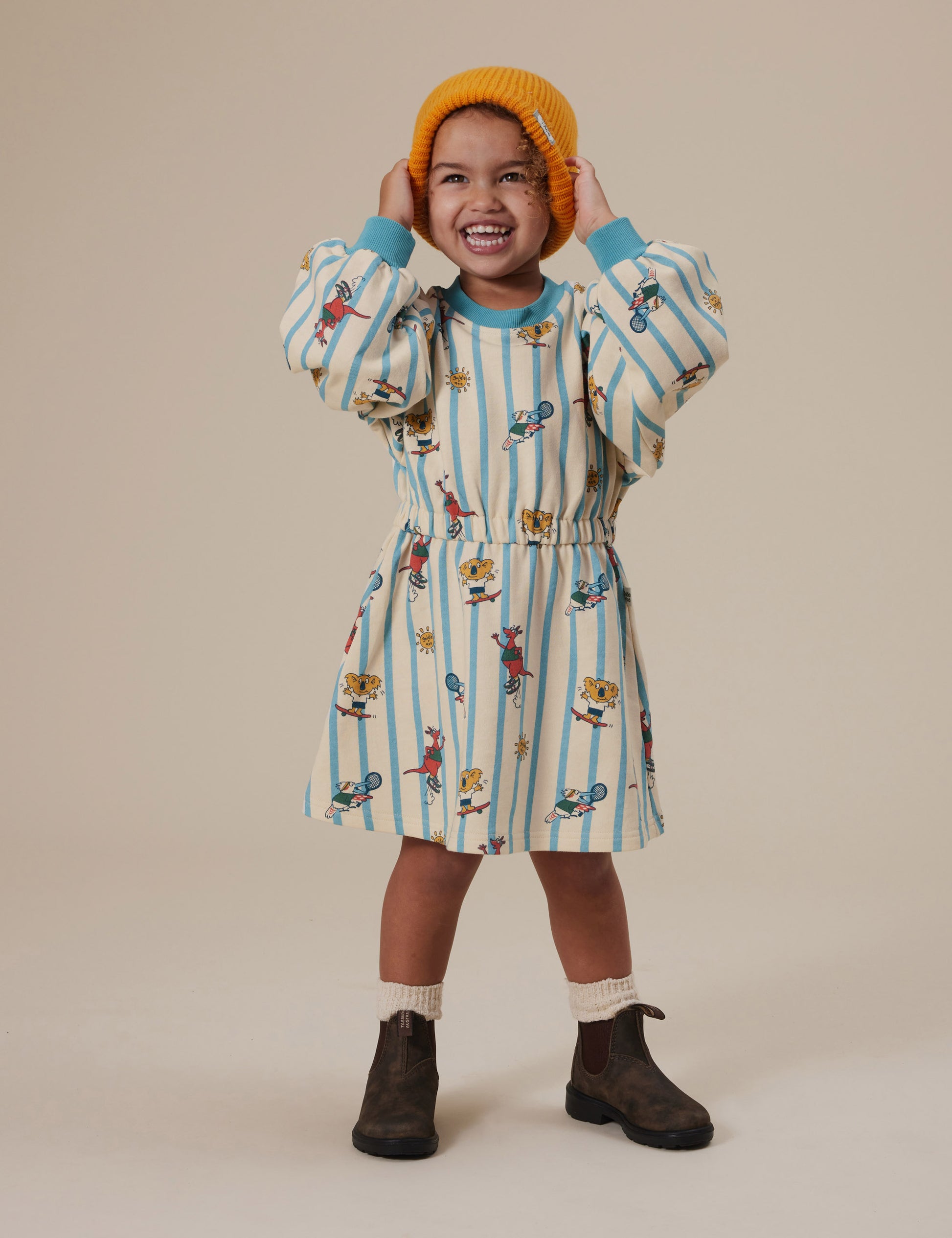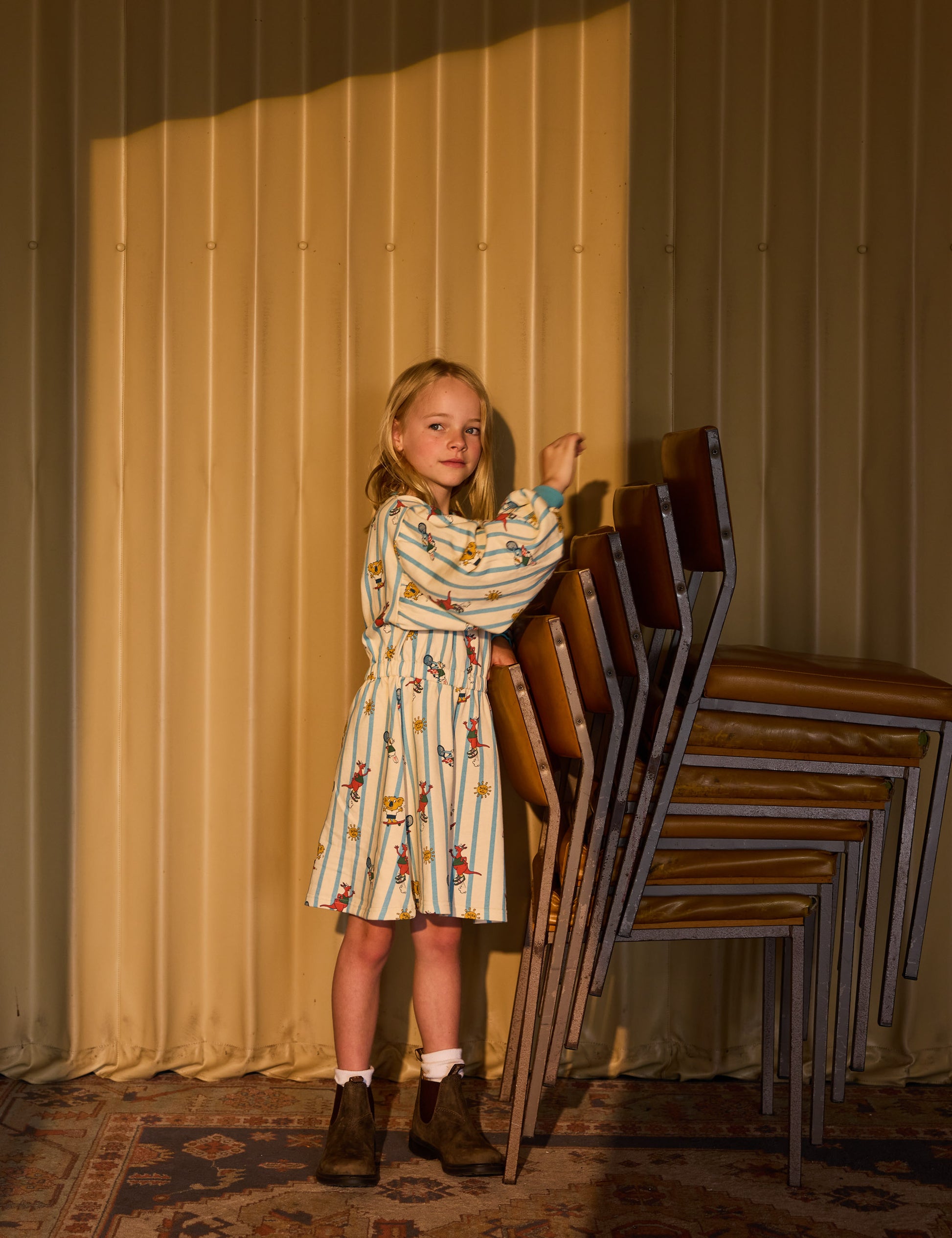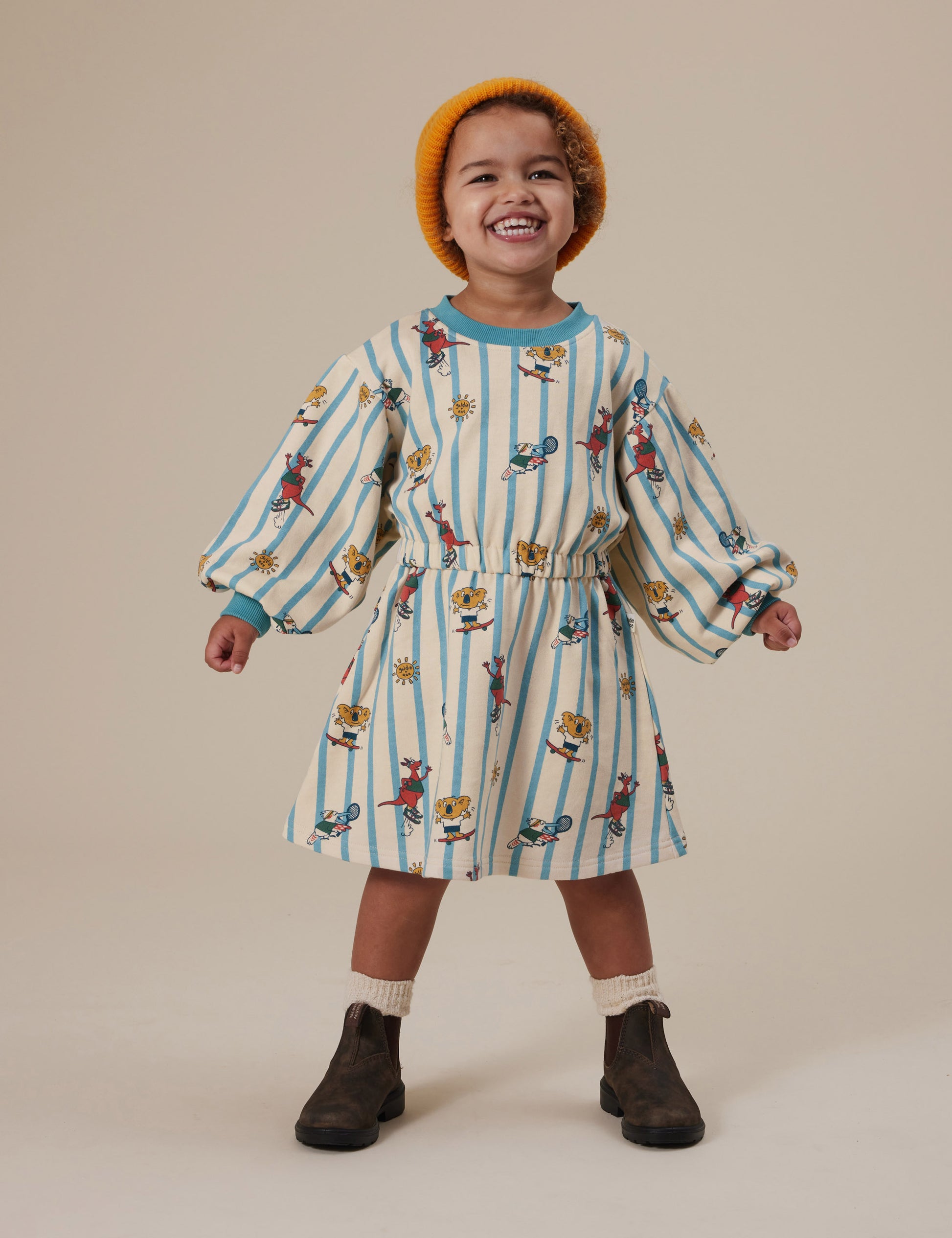 A cozy cotton french terry dress featuring our hand-drawn 'Jolly Jumpers' family.