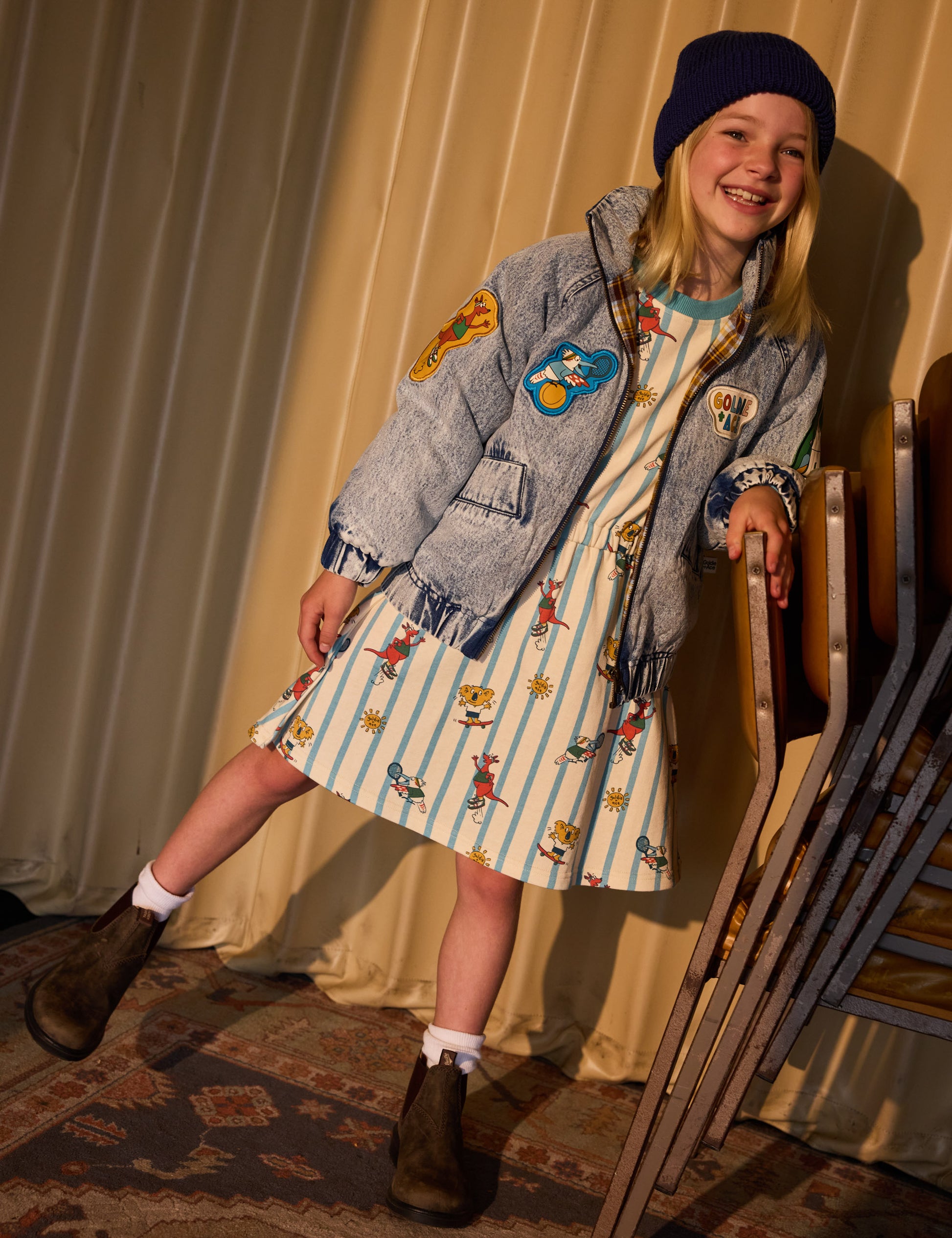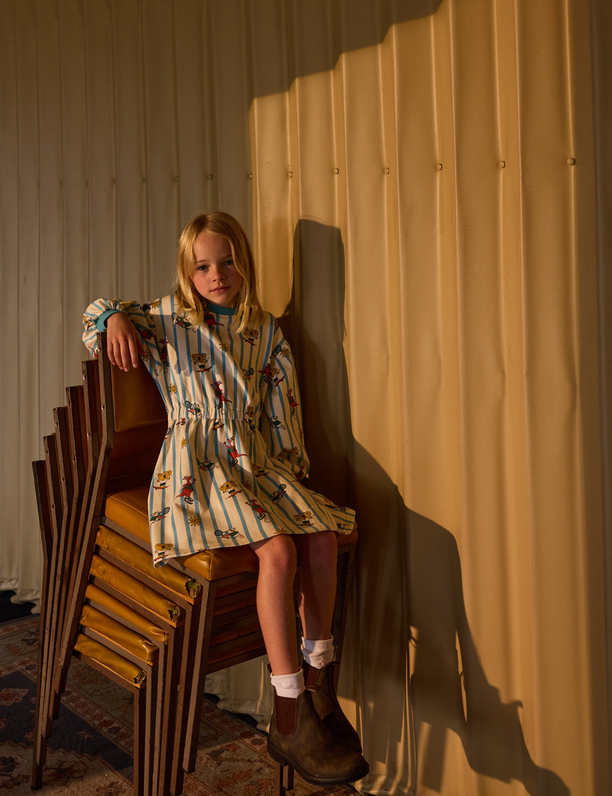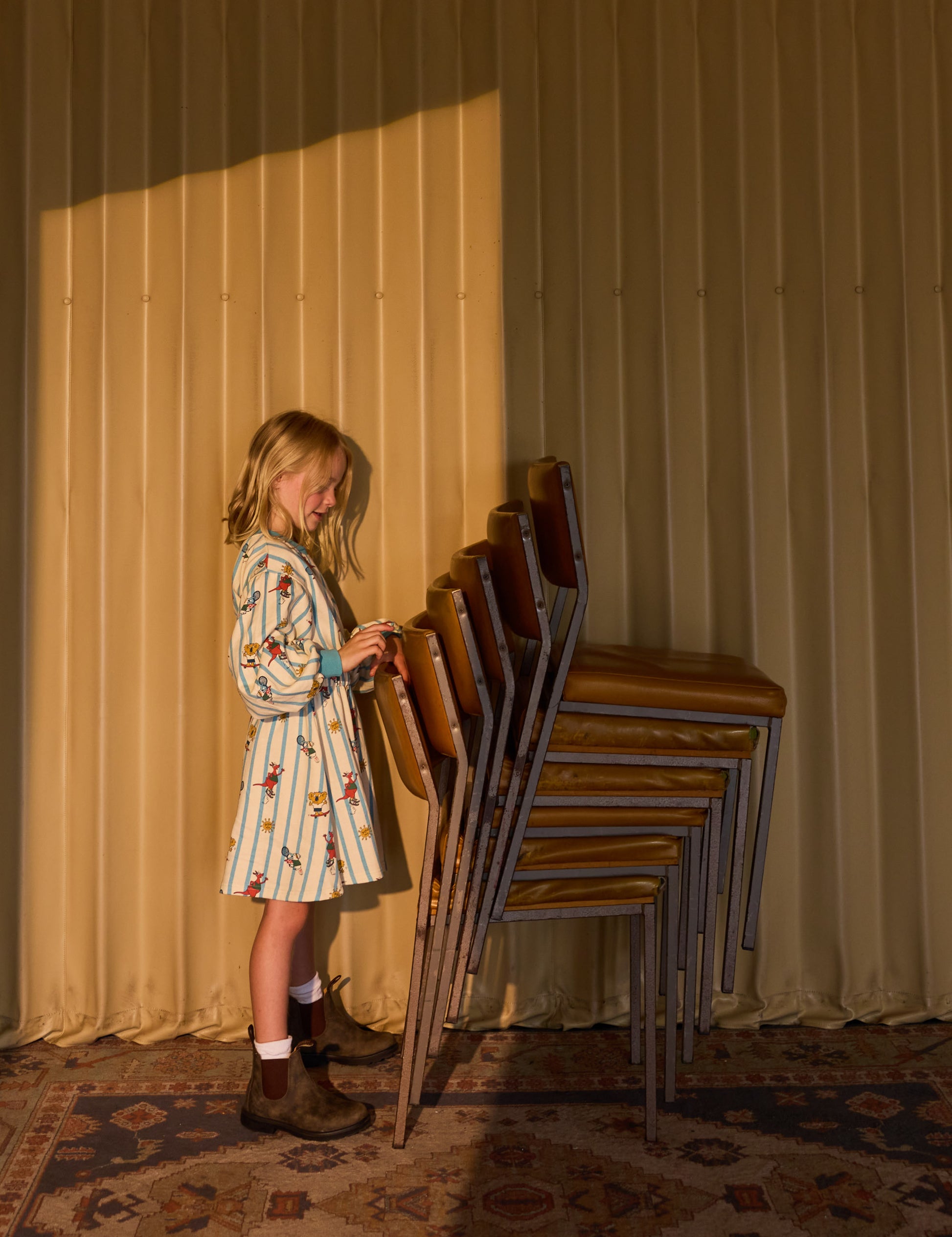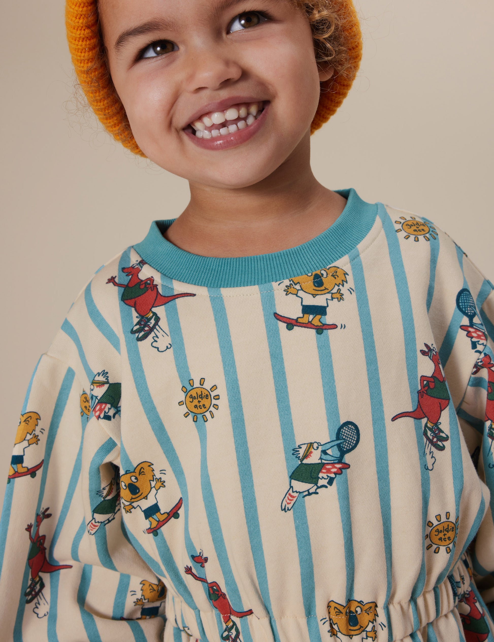 A cozy cotton french terry dress featuring our hand-drawn 'Jolly Jumpers' family.