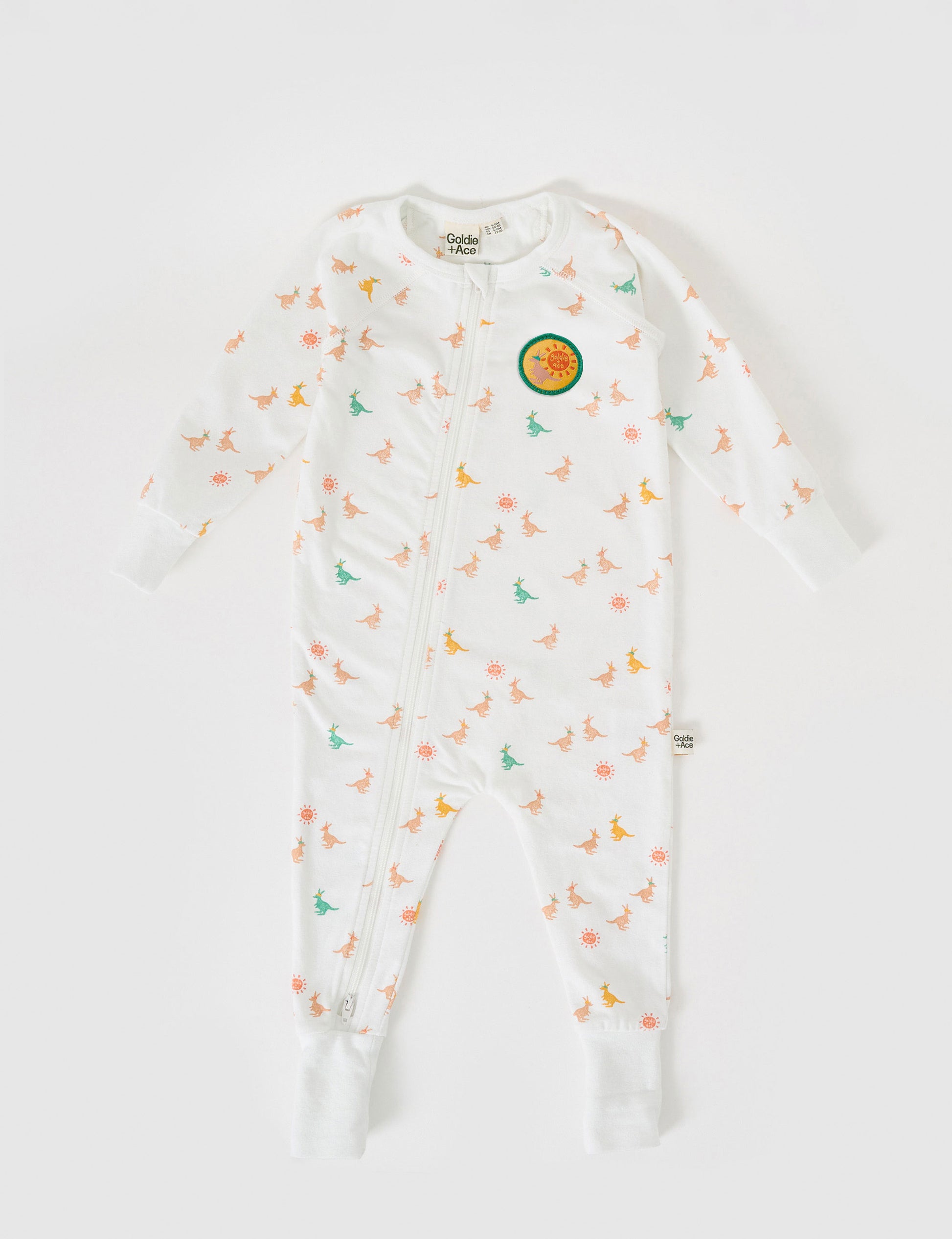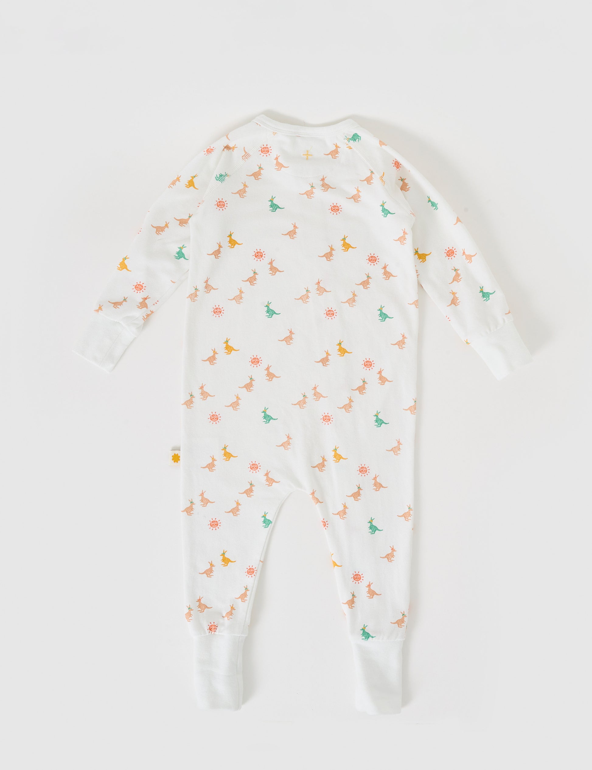 Made from soft cotton elastane, this zipsuit features charming Australiana animal prints for cozy nights.