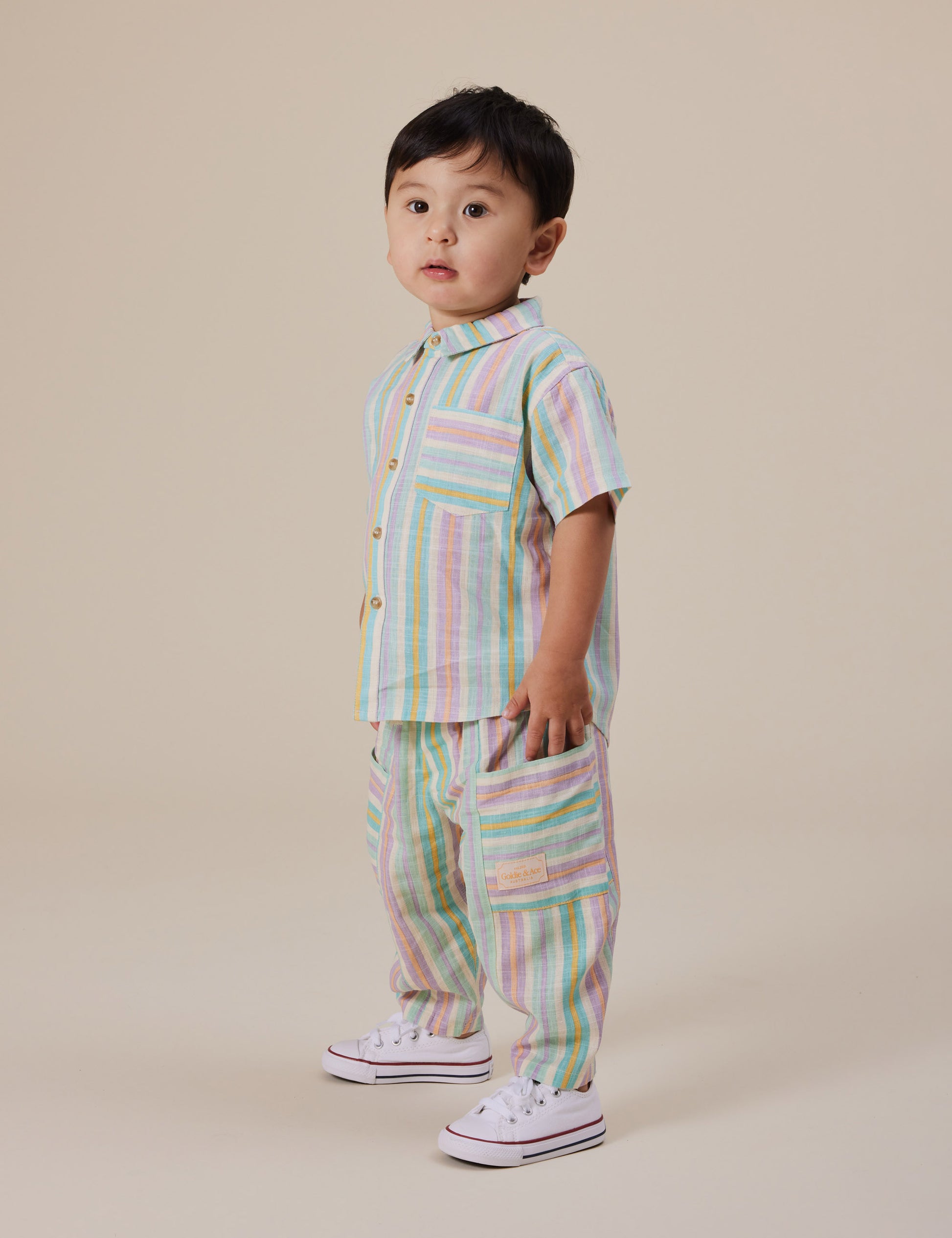A relaxed, easy-wearing pant in Resort Stripe, featuring handy pockets and a breathable linen blend for all-day comfort.