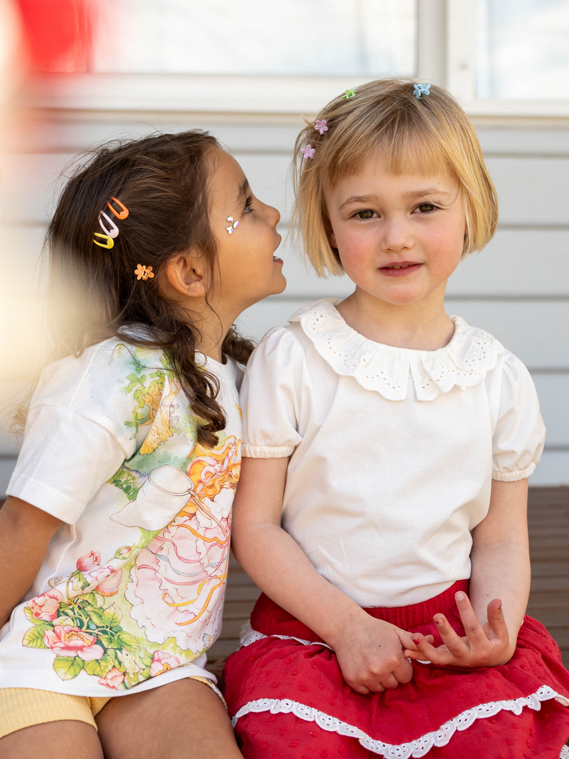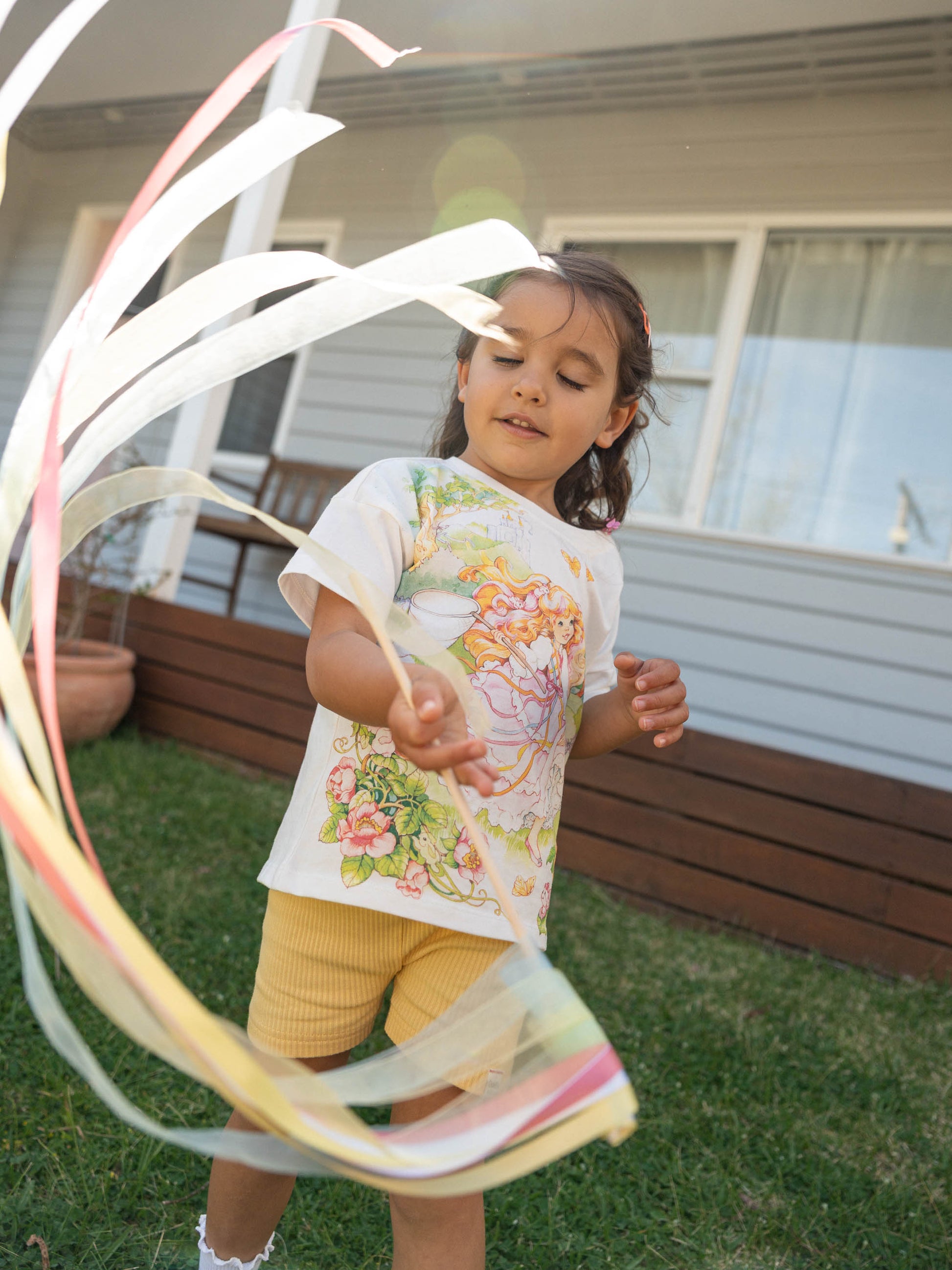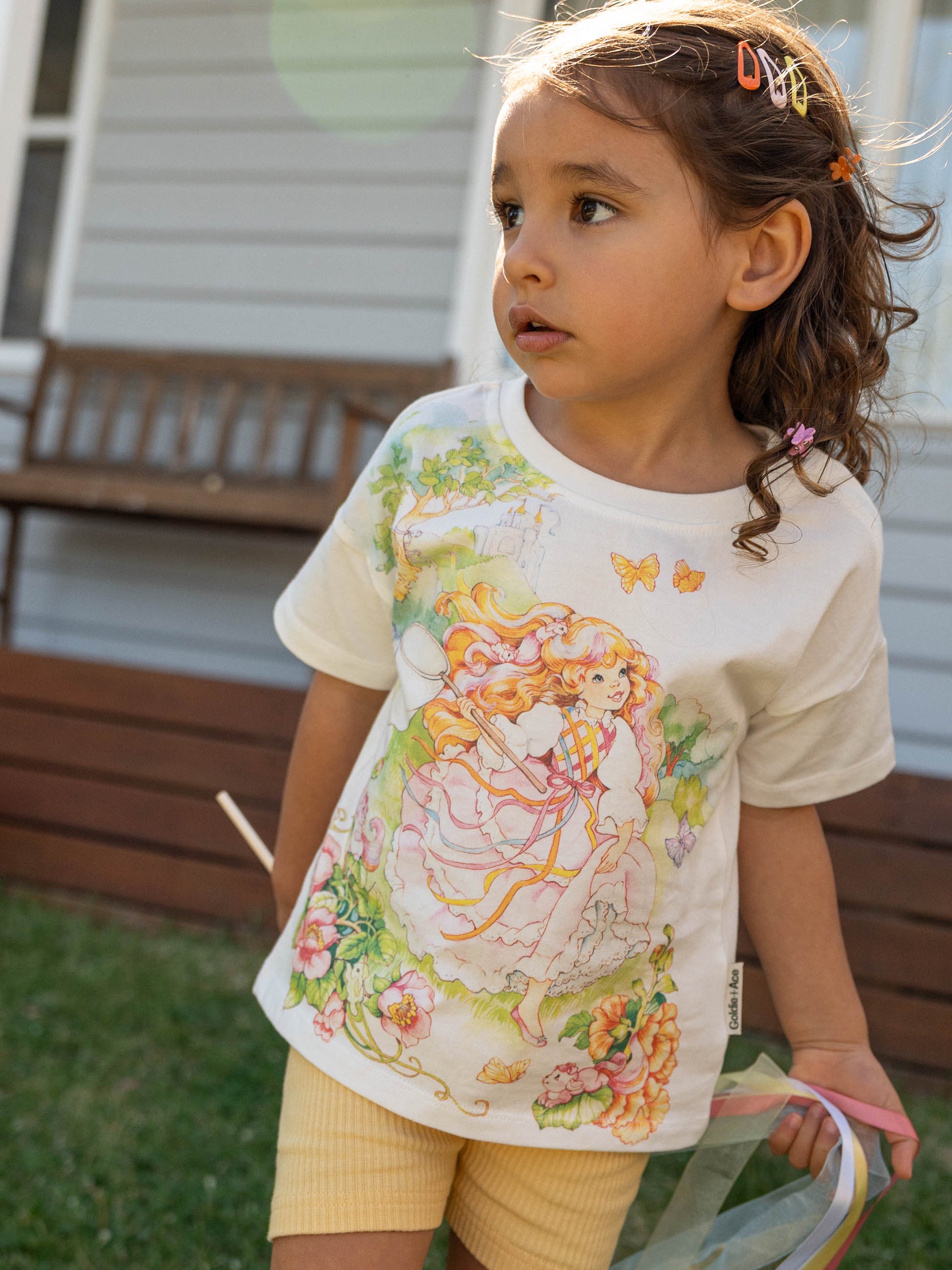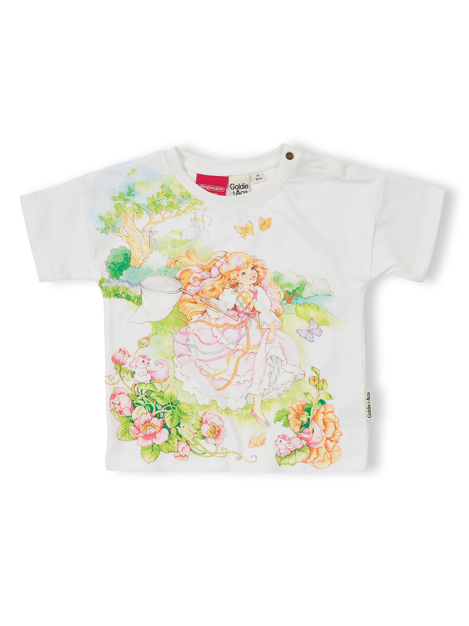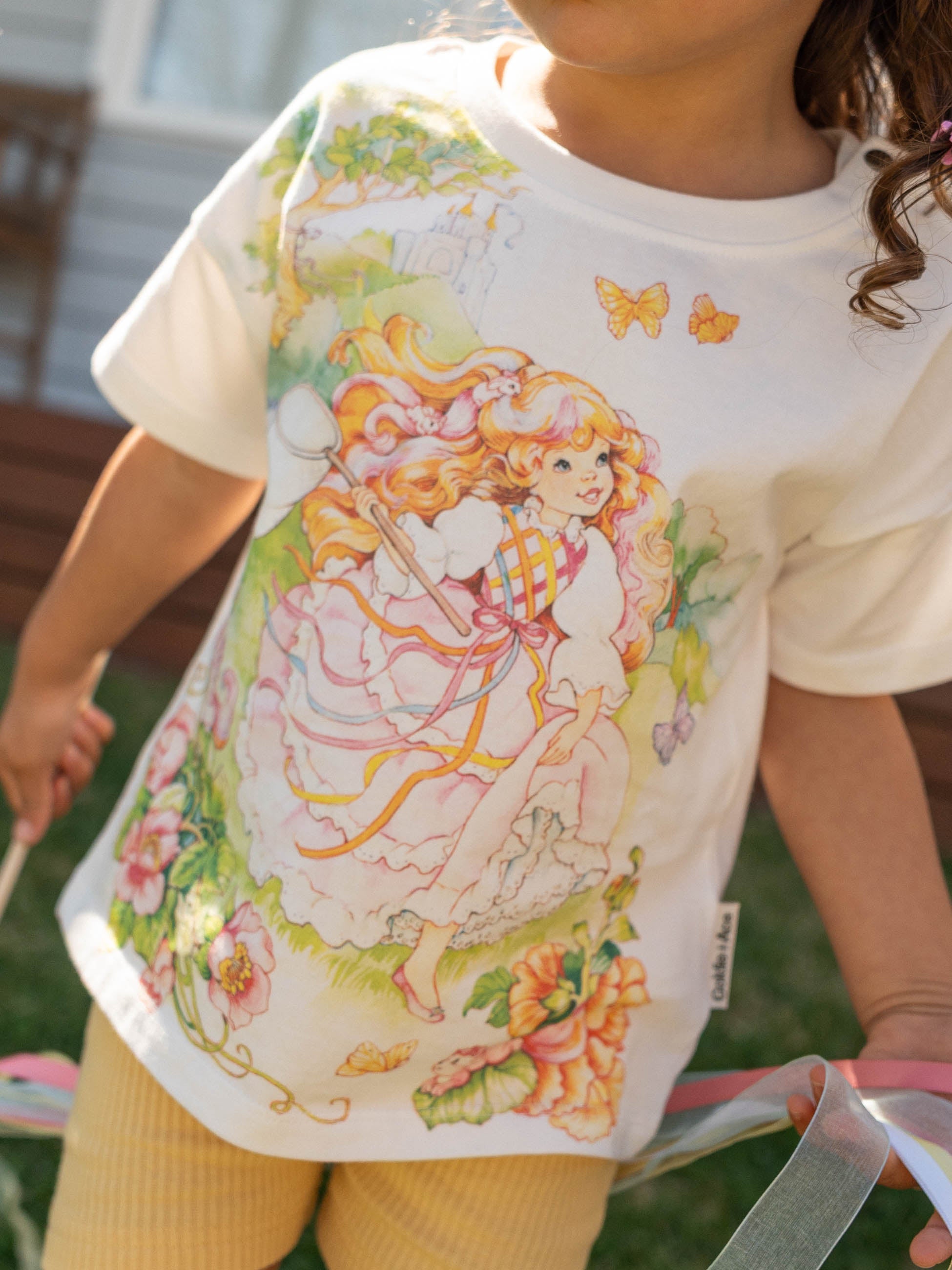 Made from ultra-soft white cotton, this Pixietails Princess tee features the one and only Lady Lovely Locks herself, alongside her Pixietails from the beloved 1980s fantasy series.