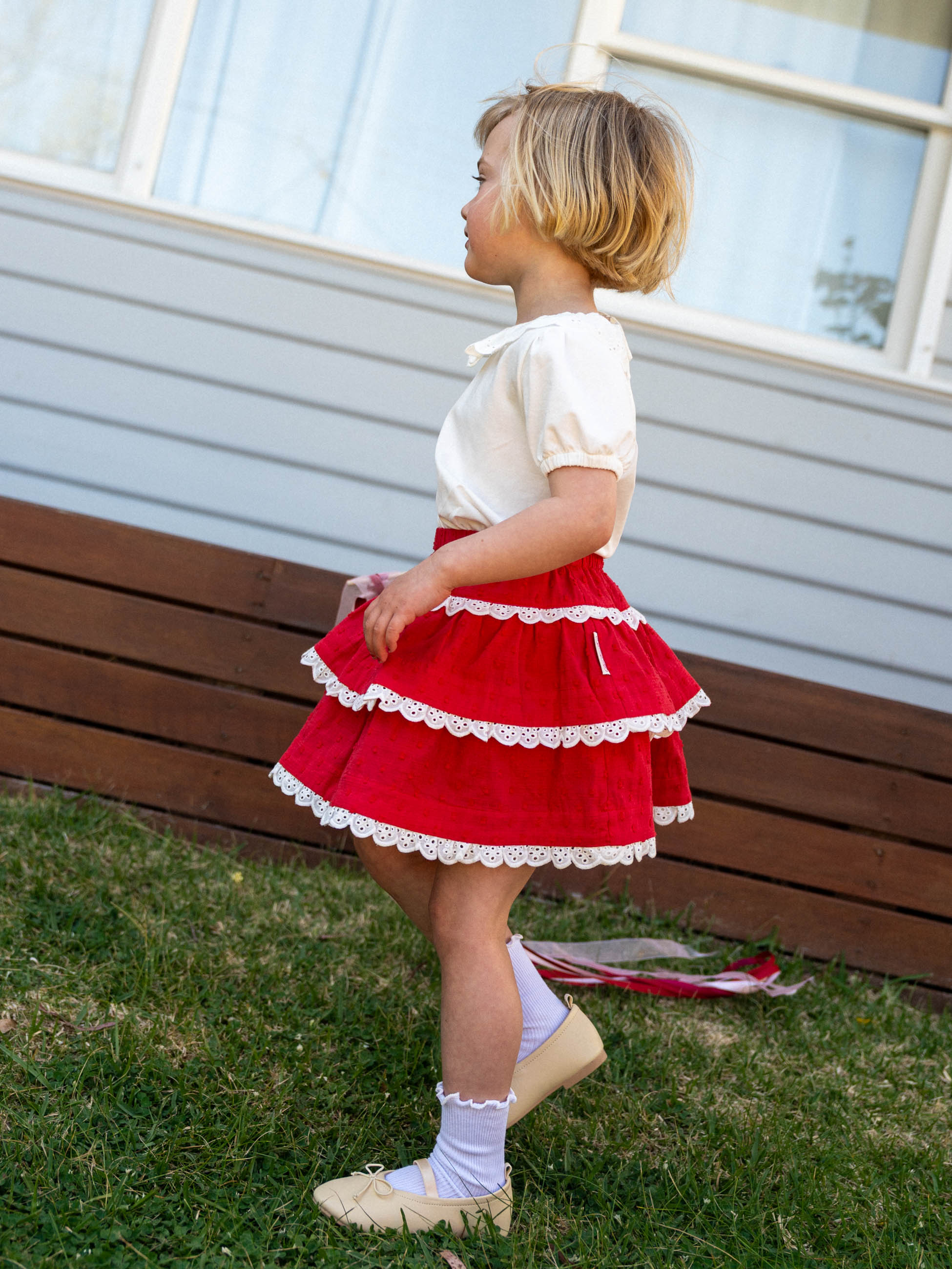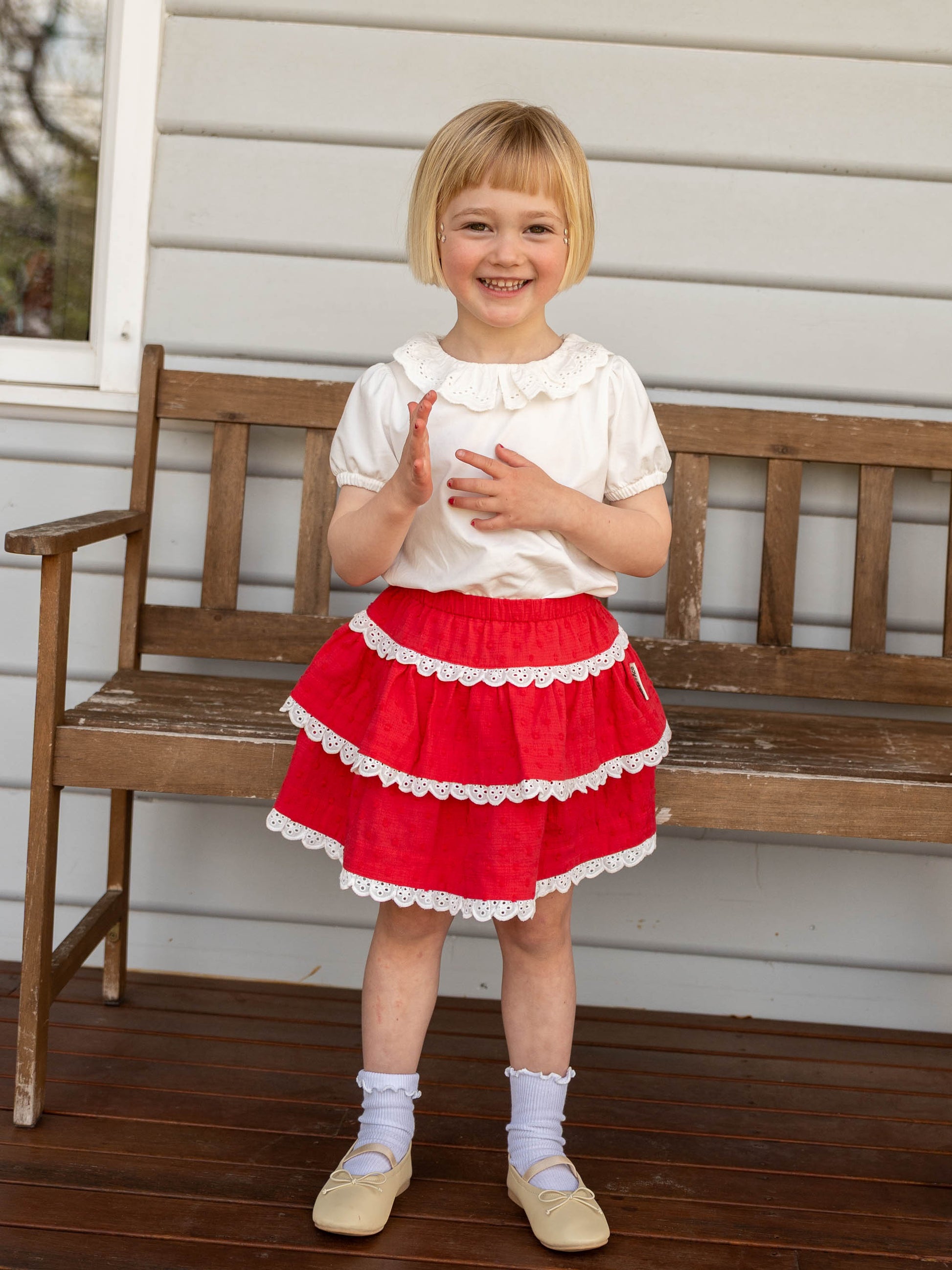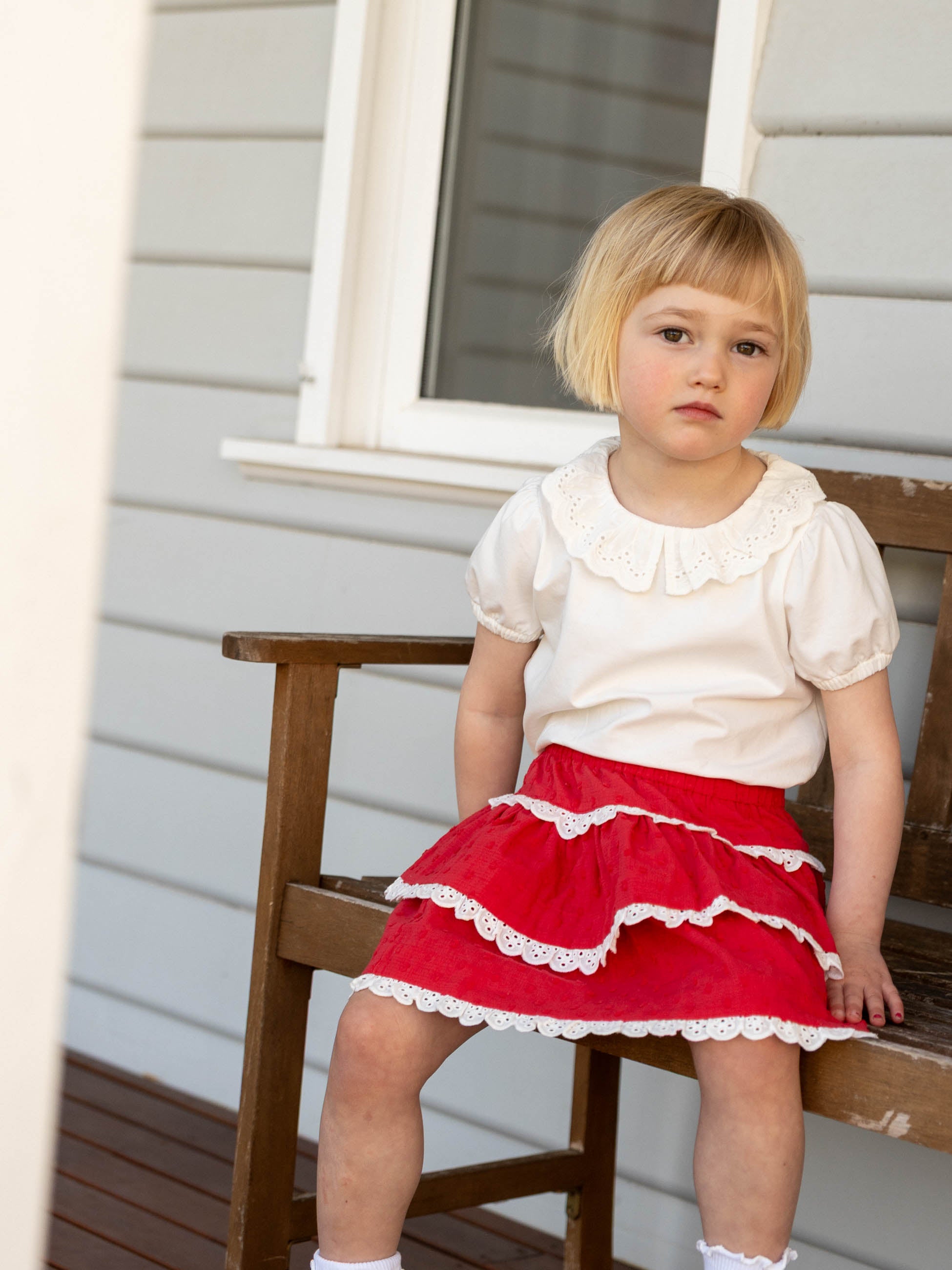 A charming cotton jersey top with puff sleeves and a feature broderie collar. Perfect on it's own or a versatile layering piece that adds an element of pretty to every ensemble!