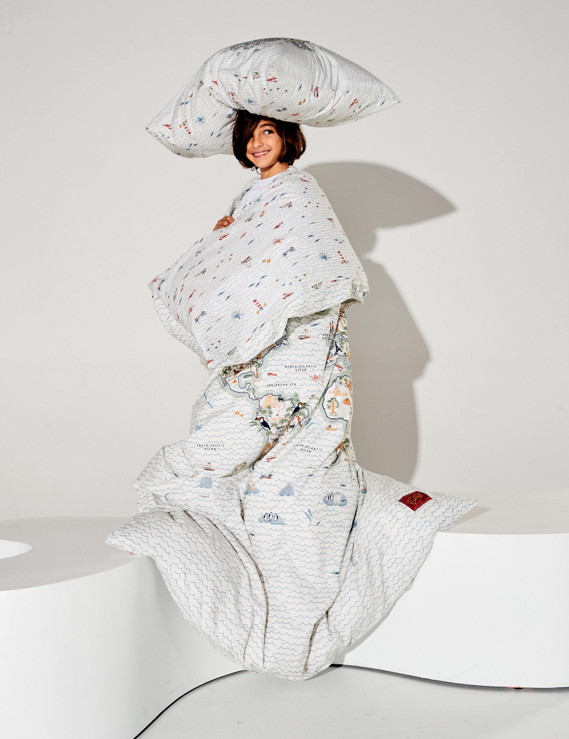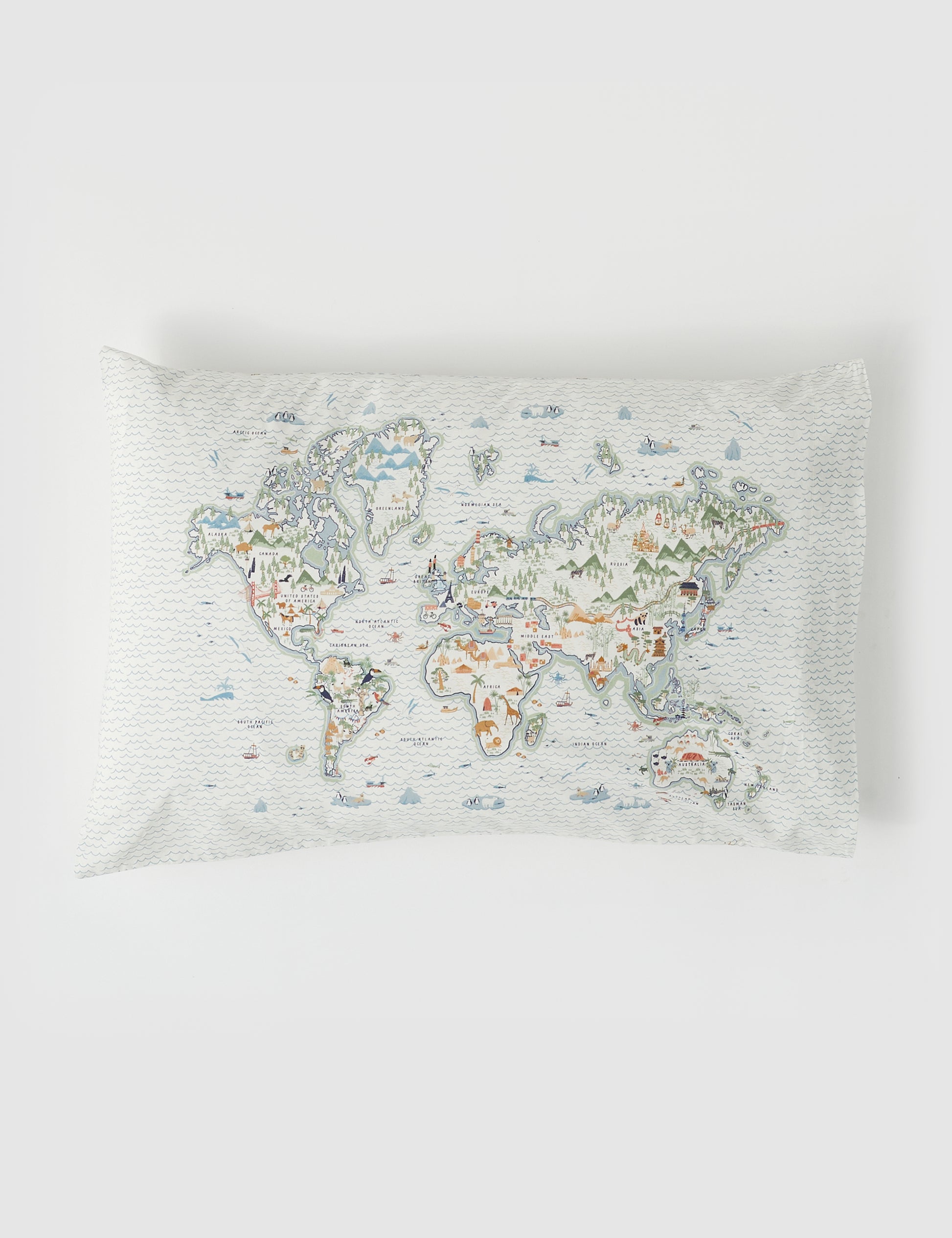 Our Oceania bedlinen features a nostalgic and colourful world map view for your little ones to explore the big wide world without ever leaving their bed. Handmade from 100% pure washed cotton. Reversed the deep blue sea.
