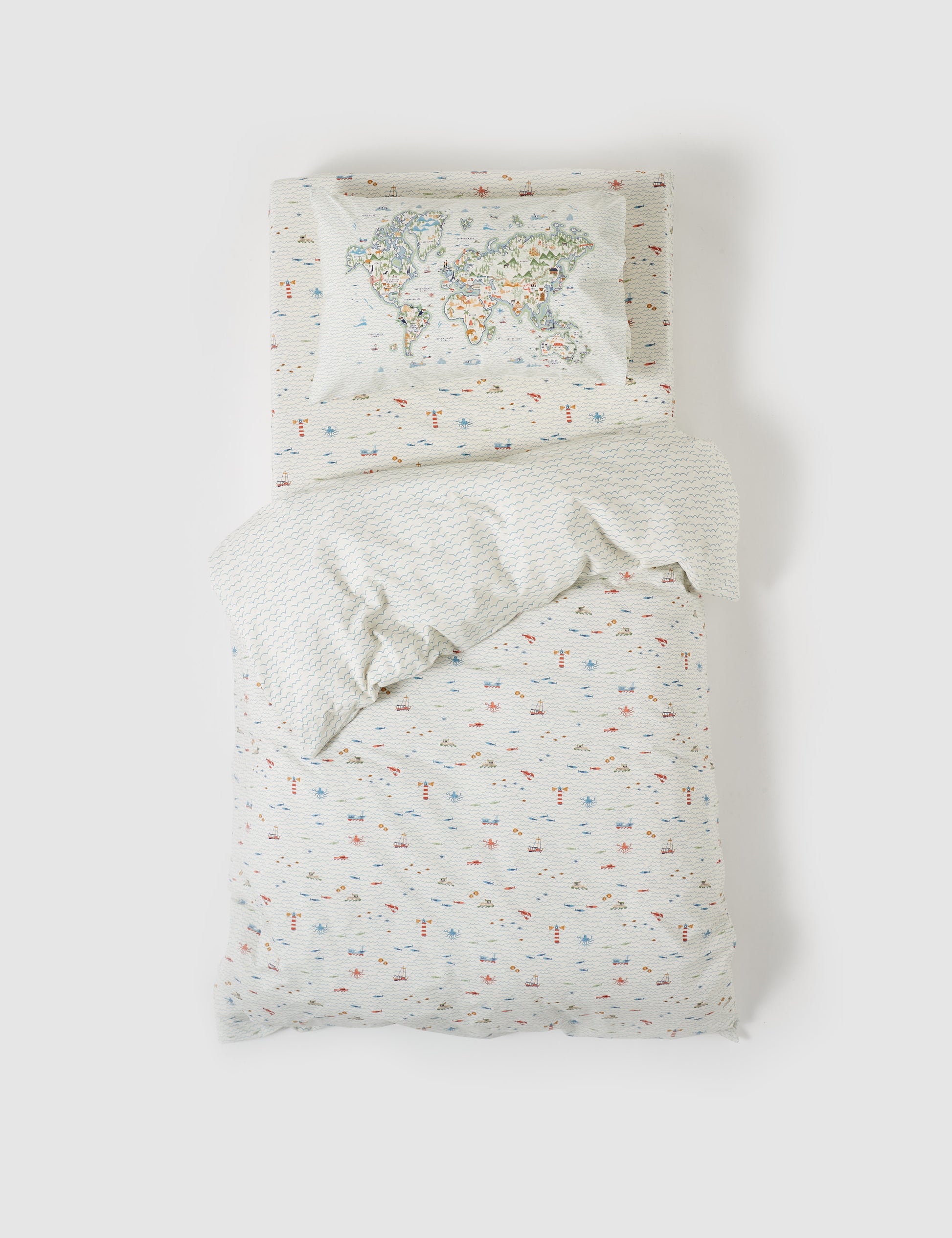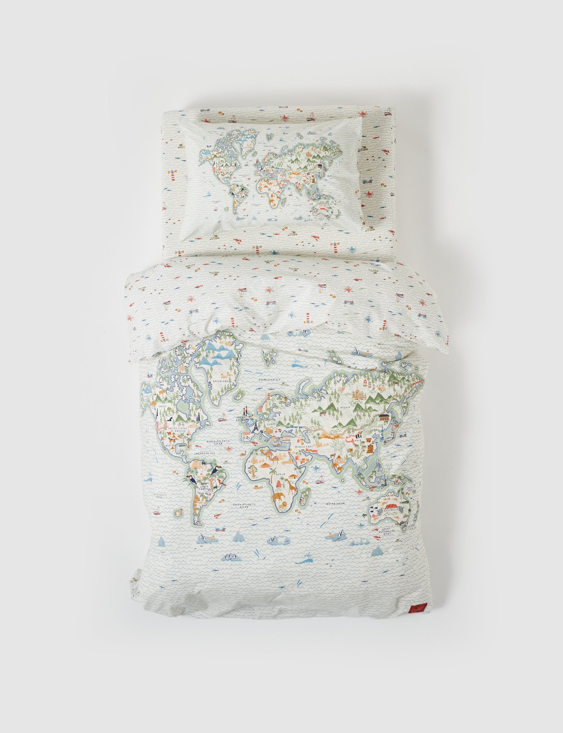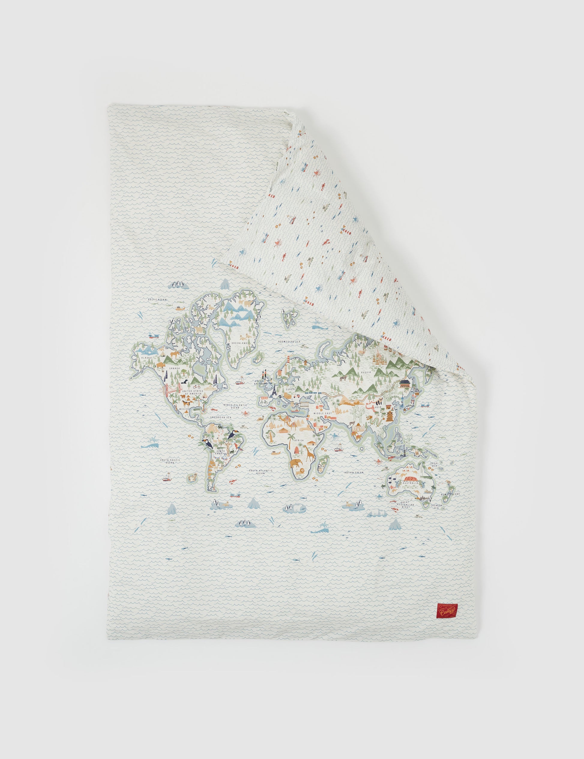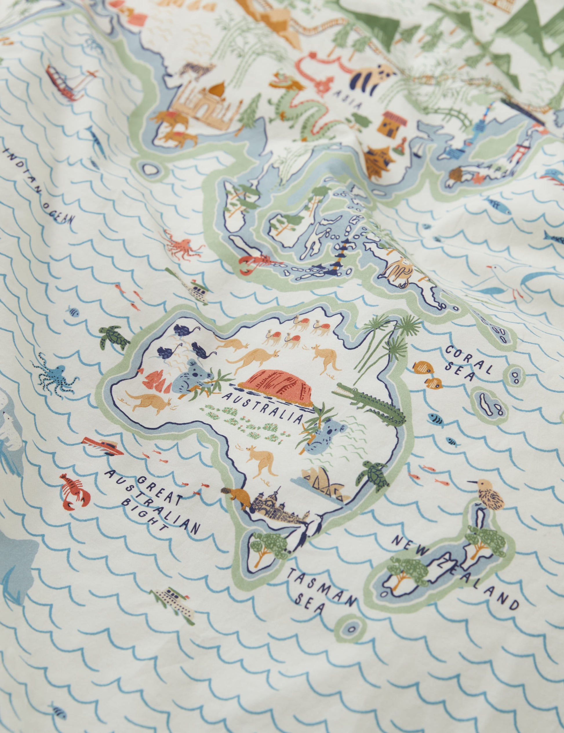Our Oceania bedlinen features a nostalgic and colourful world map view for your little ones to explore the big wide world without ever leaving their bed. Handmade from 100% pure washed cotton. Reversed the deep blue sea. Quilt insert not included.