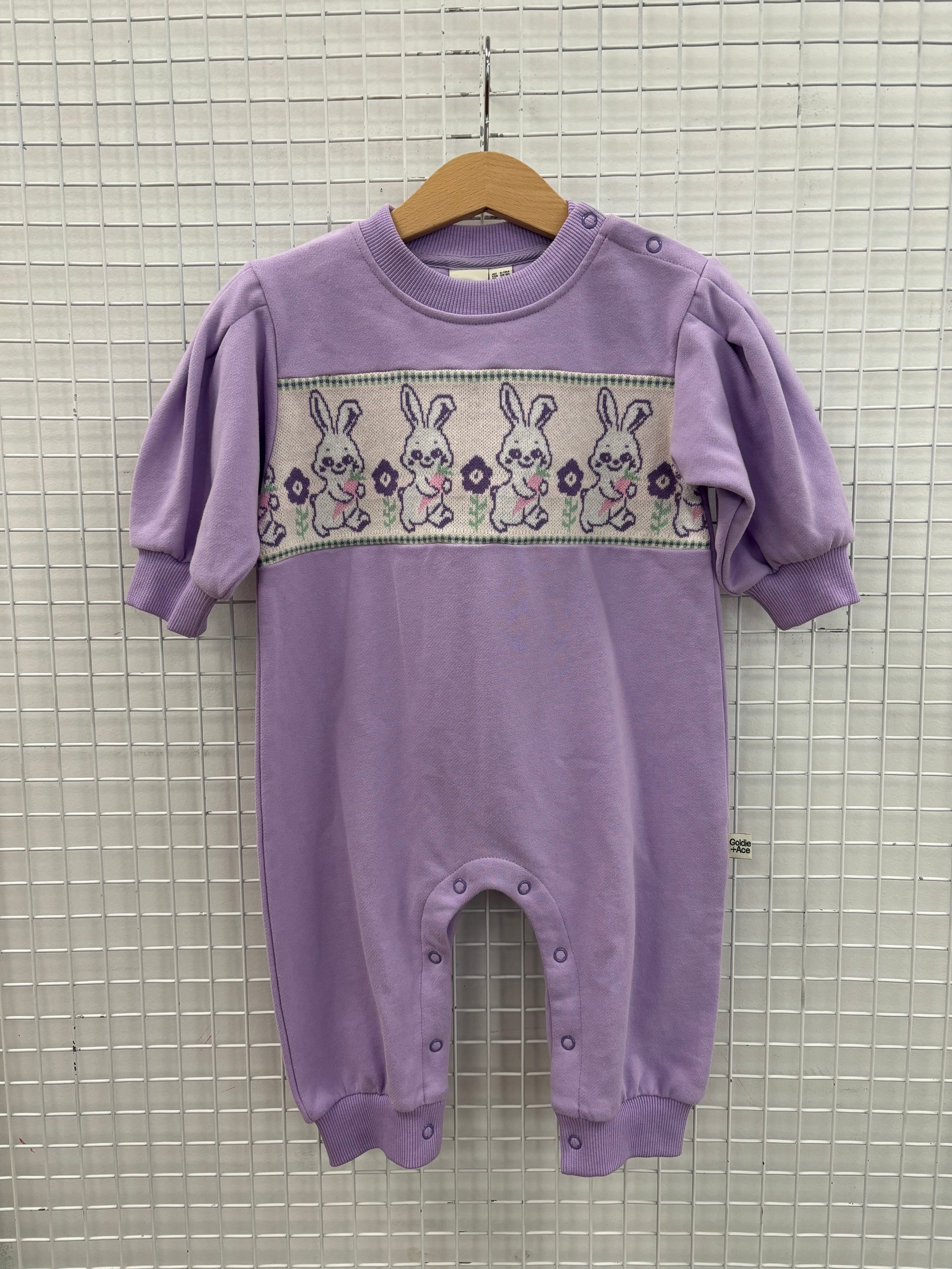PUFF SLEEVE BUNNY ROMPER LILAC - 6-12M
