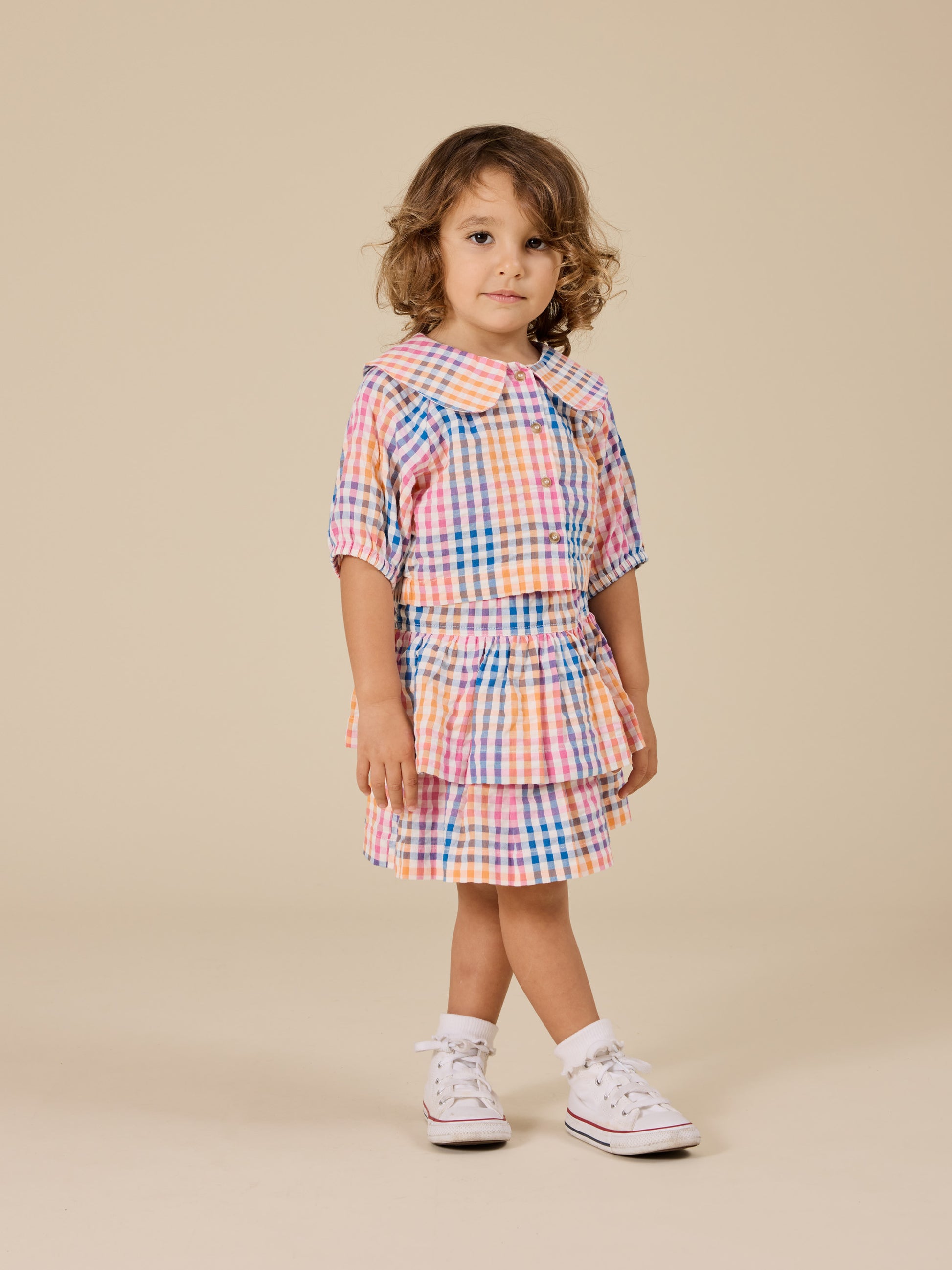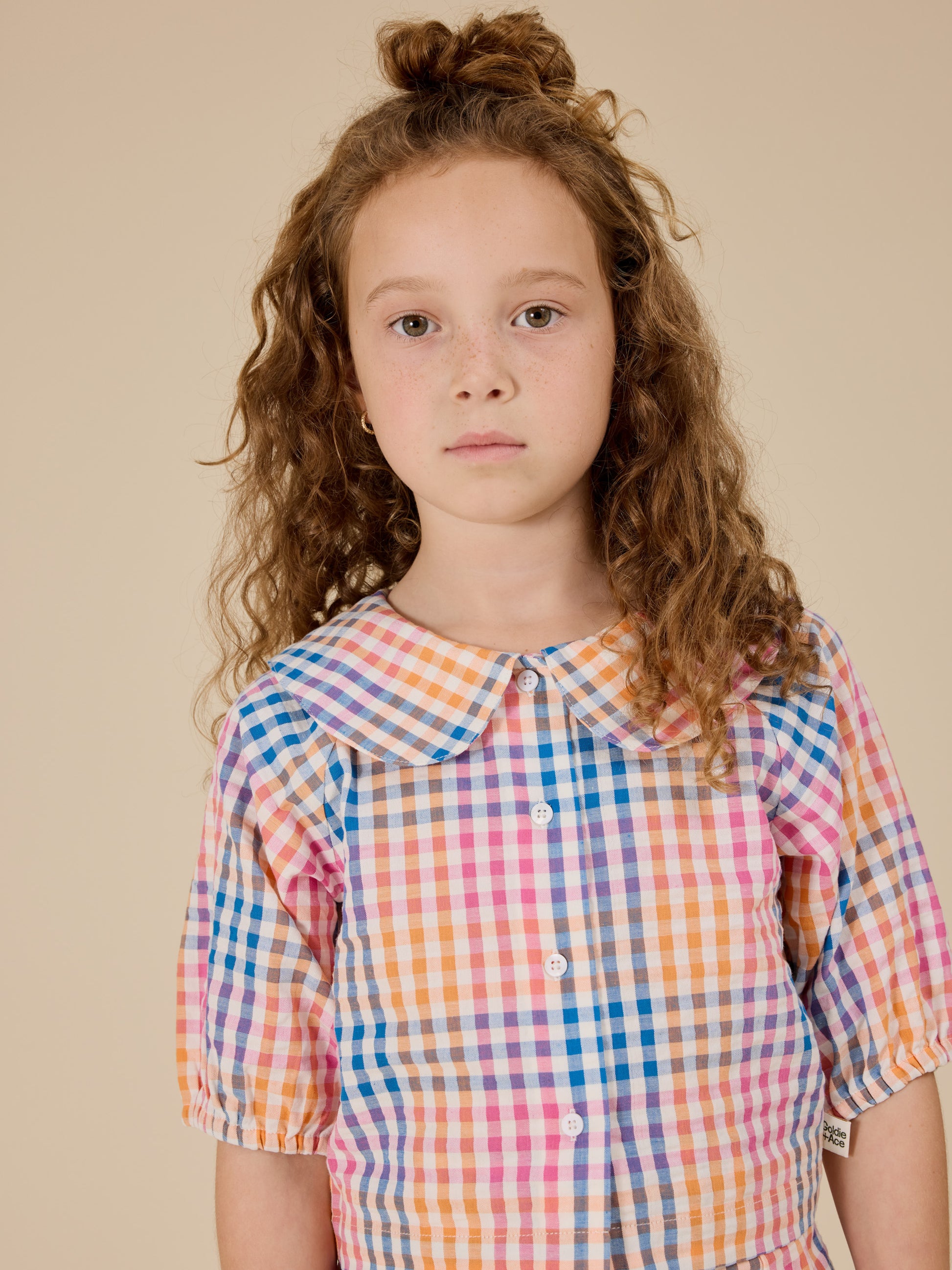 Soft gingham with a big dreamy collar, and enough charm to melt an ice cream before the sun does.