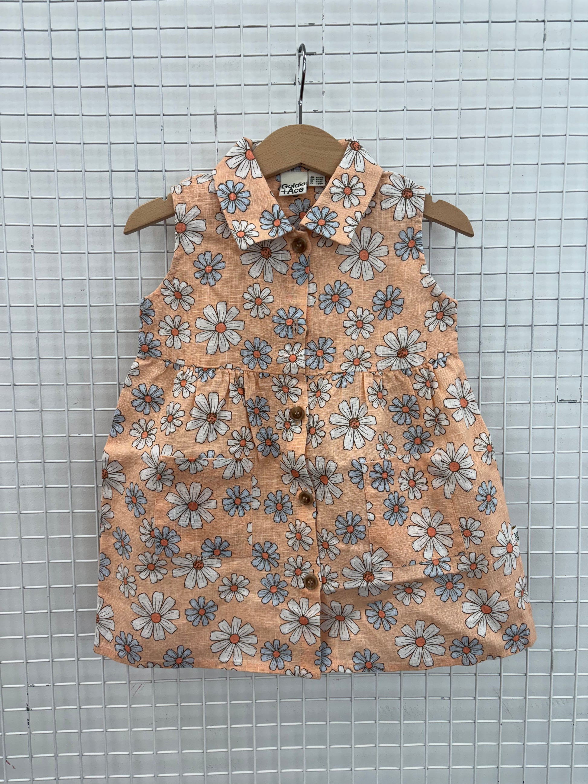 RUDY LINEN DRESS DAISY PEACH - 6-12M