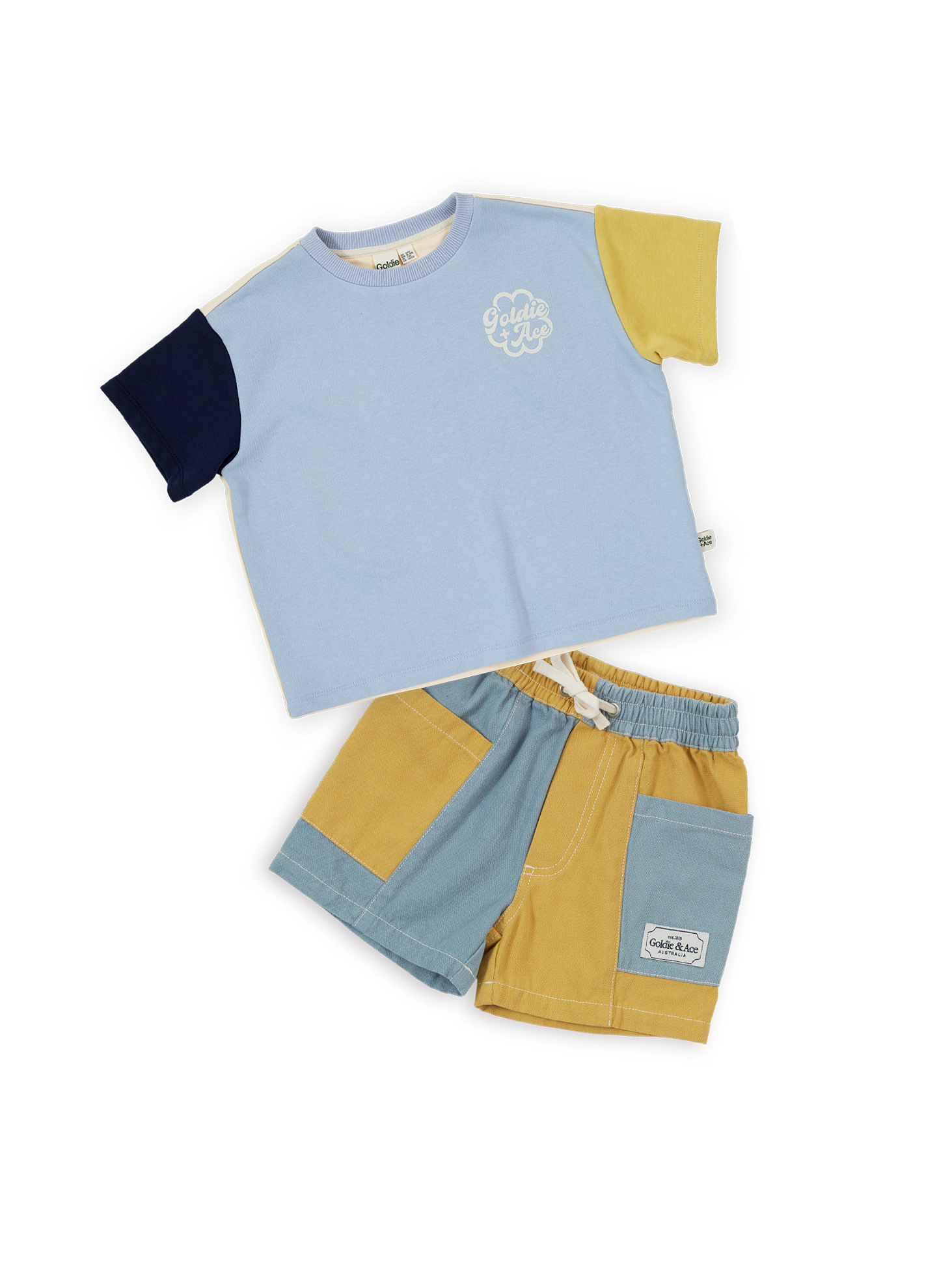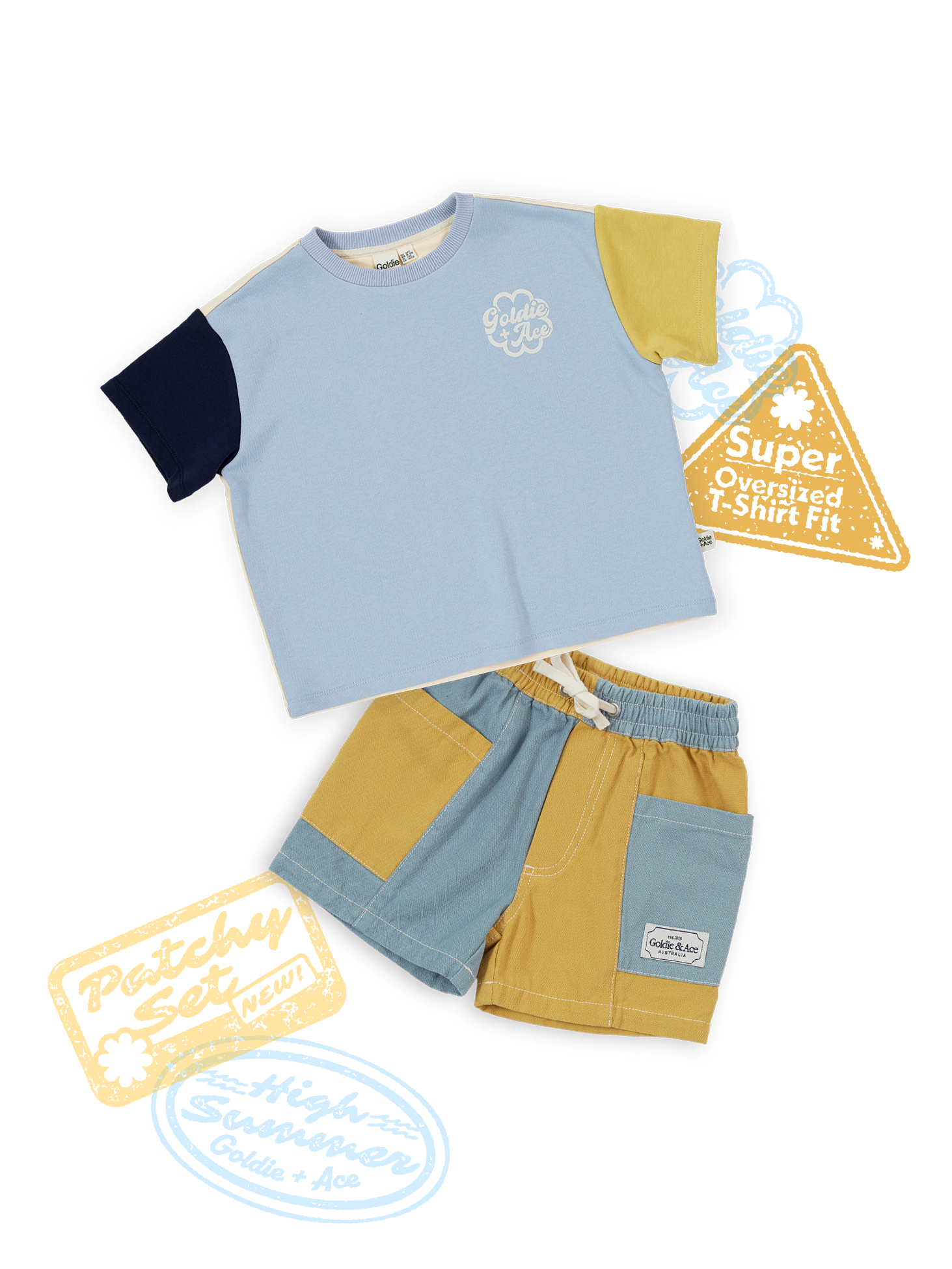 Sky blue colourblocked head-to-toe, and as fuss-free as it gets. Oversized tee plus shorts - roomy, comfy, and built for easy outfit decisions.